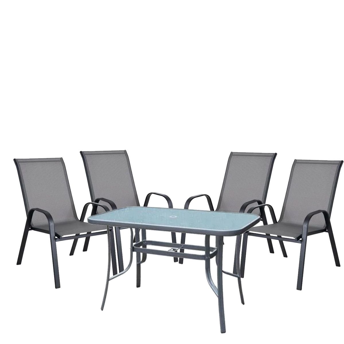 Σετ Τραπεζαρία Κήπου SUN Μέταλλο Γκρι/Μαύρο Με 4 Πολυθρόνες
