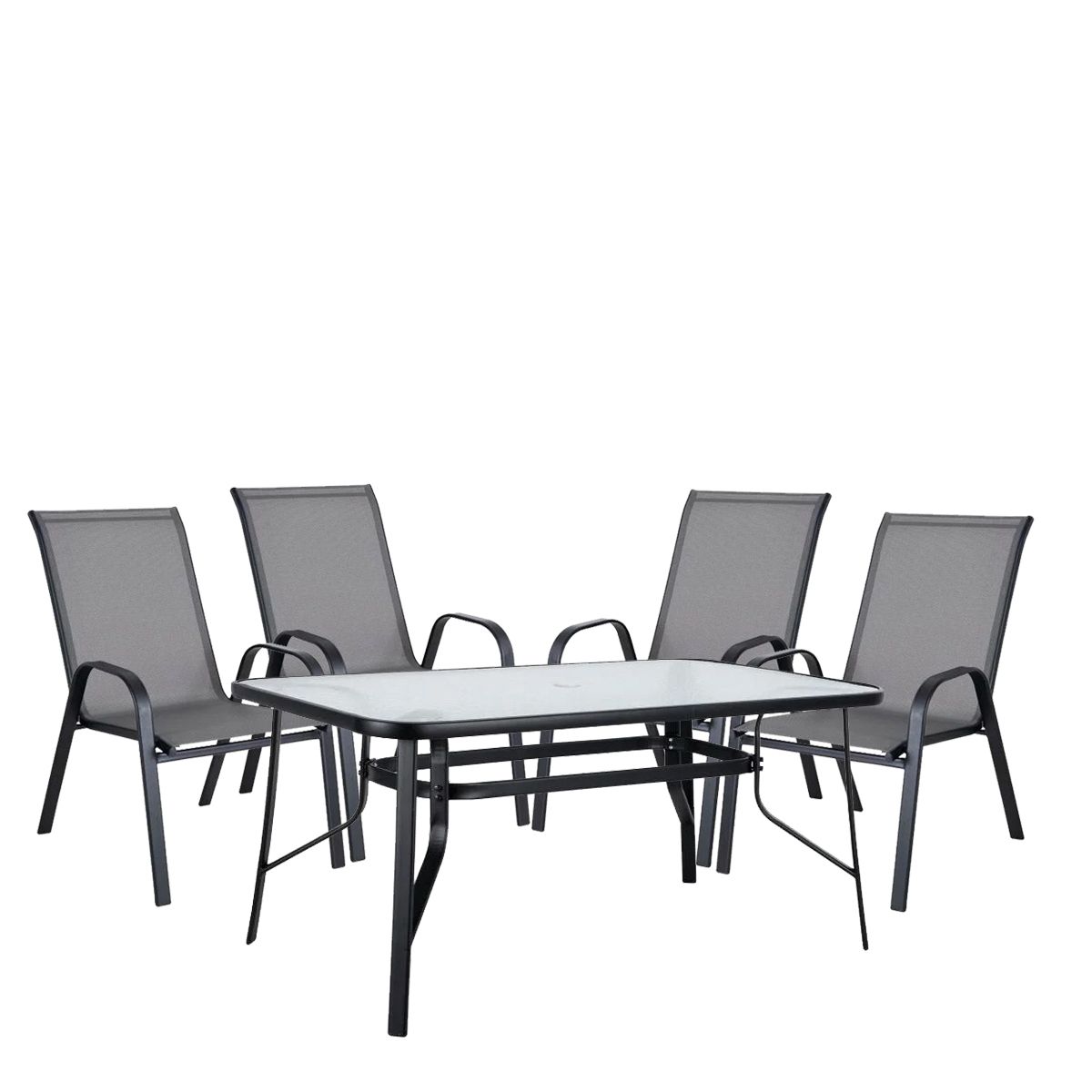 Σετ Τραπεζαρία Κήπου Sun Μέταλλο Μαύρο/Γκρι Με 4 Πολυθρόνες