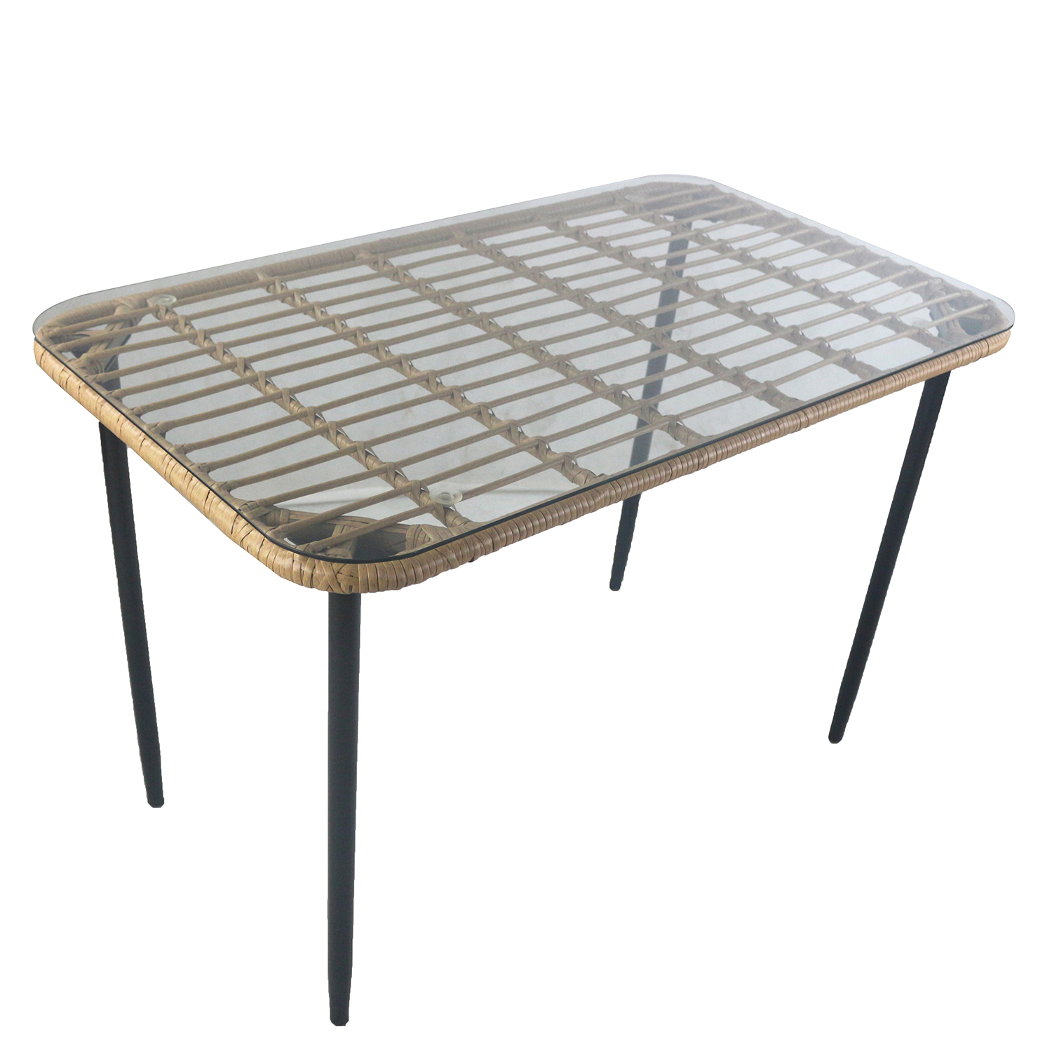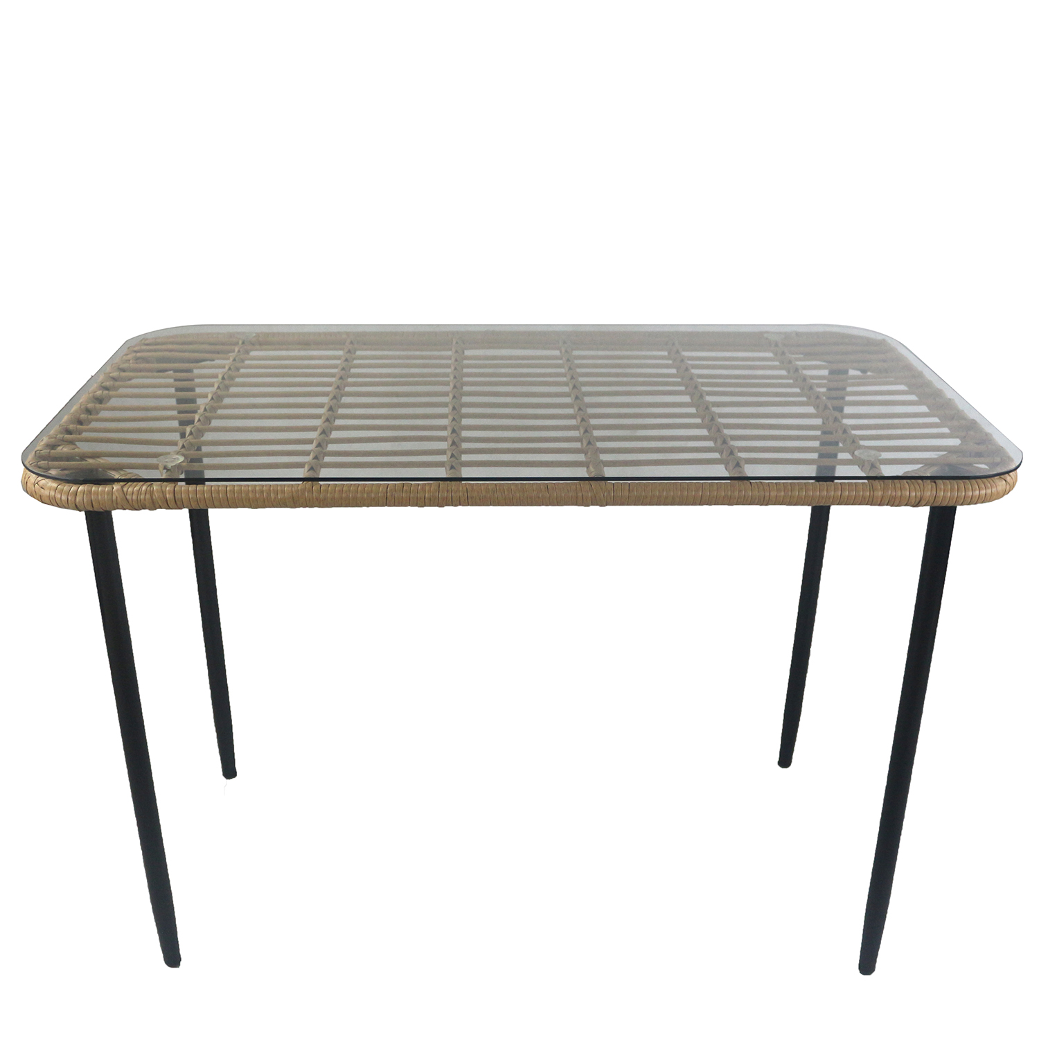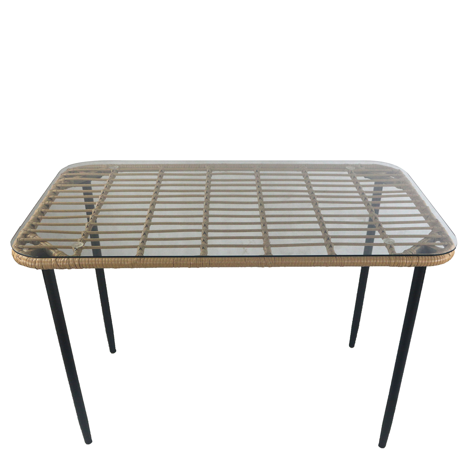 Τραπέζι Κήπου ArteLibre ANNIUS Φυσικό/Μαύρο Μέταλλο/Rattan/Γυαλί 120x70x78cm