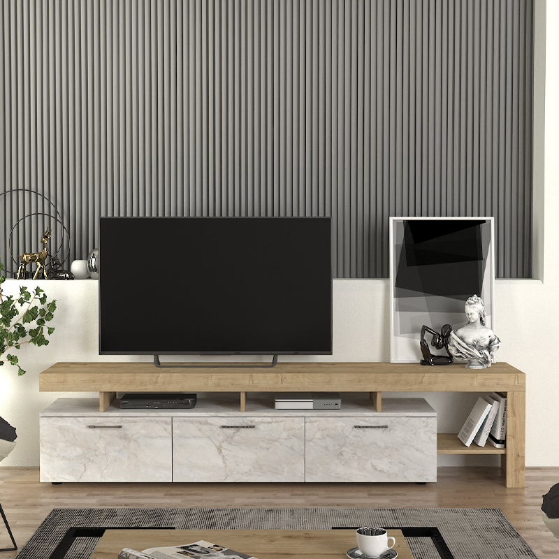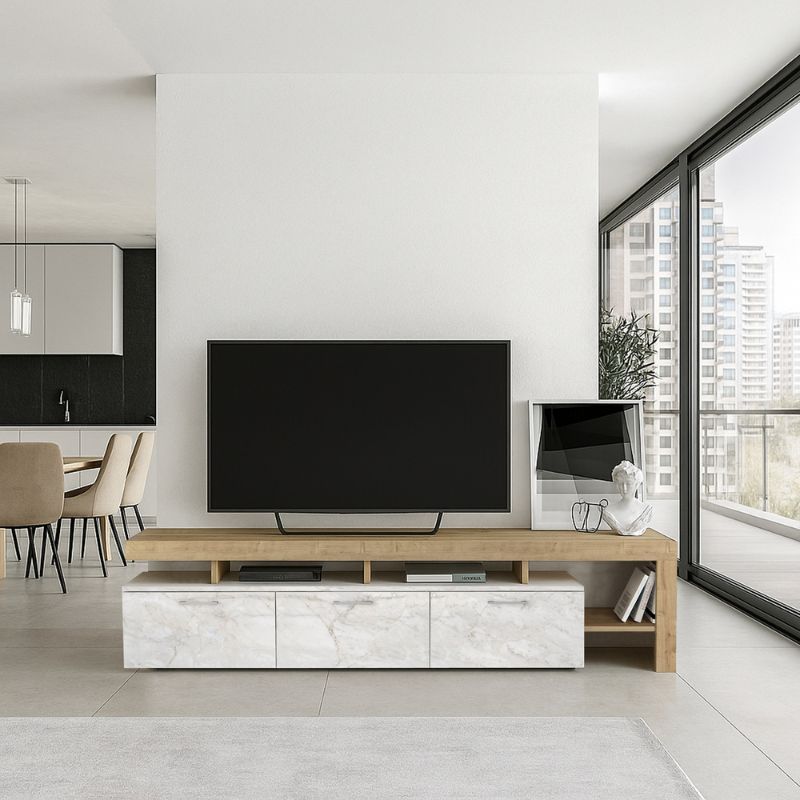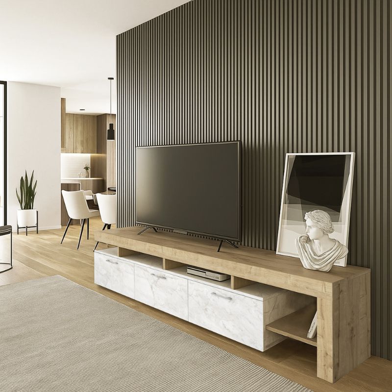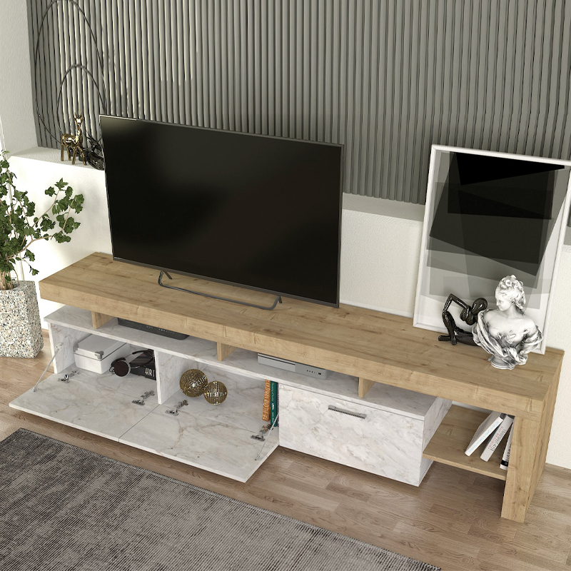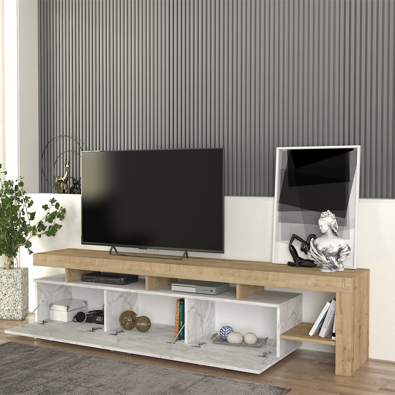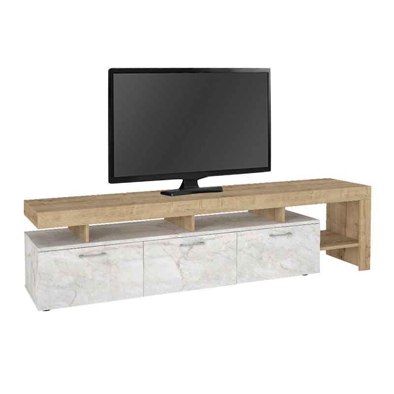 Έπιπλο Τηλεόρασης Acnes Megapap Χρώμα Λευκό εφέ Μαρμάρου - Sapphire oak 220x40x52εκ.