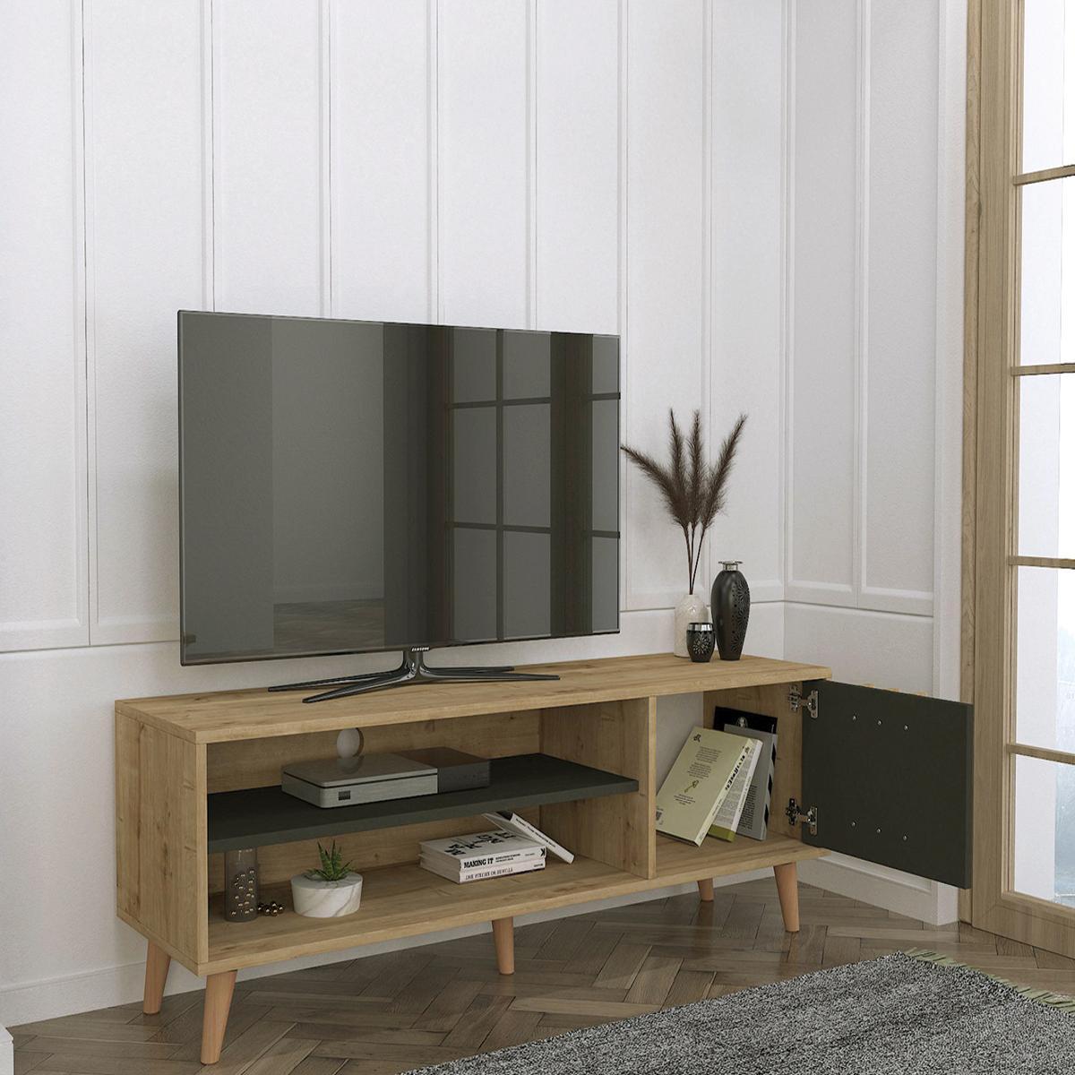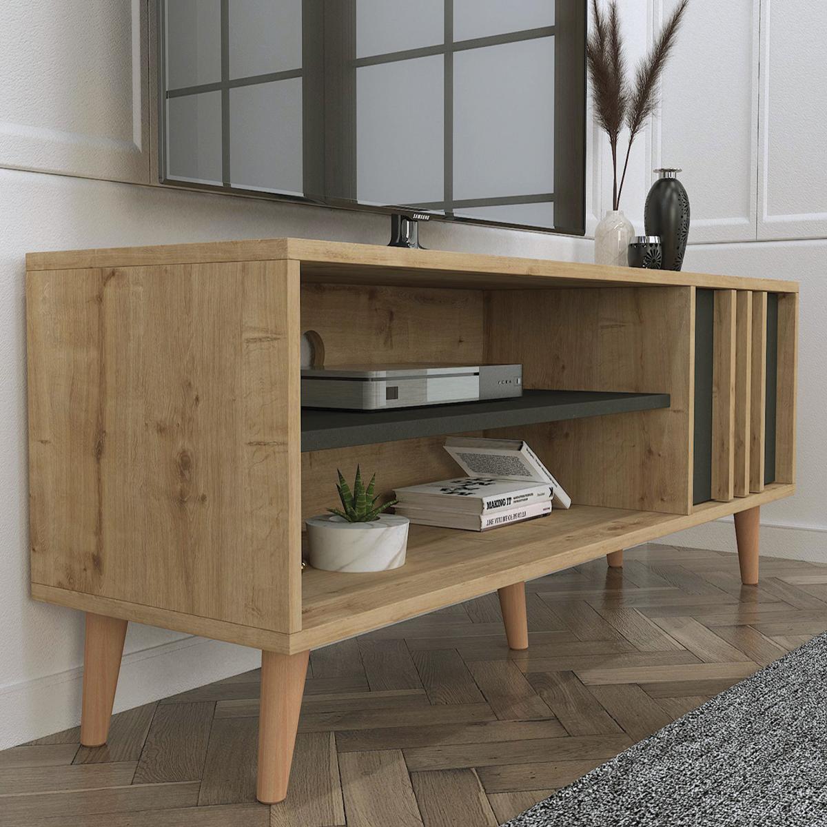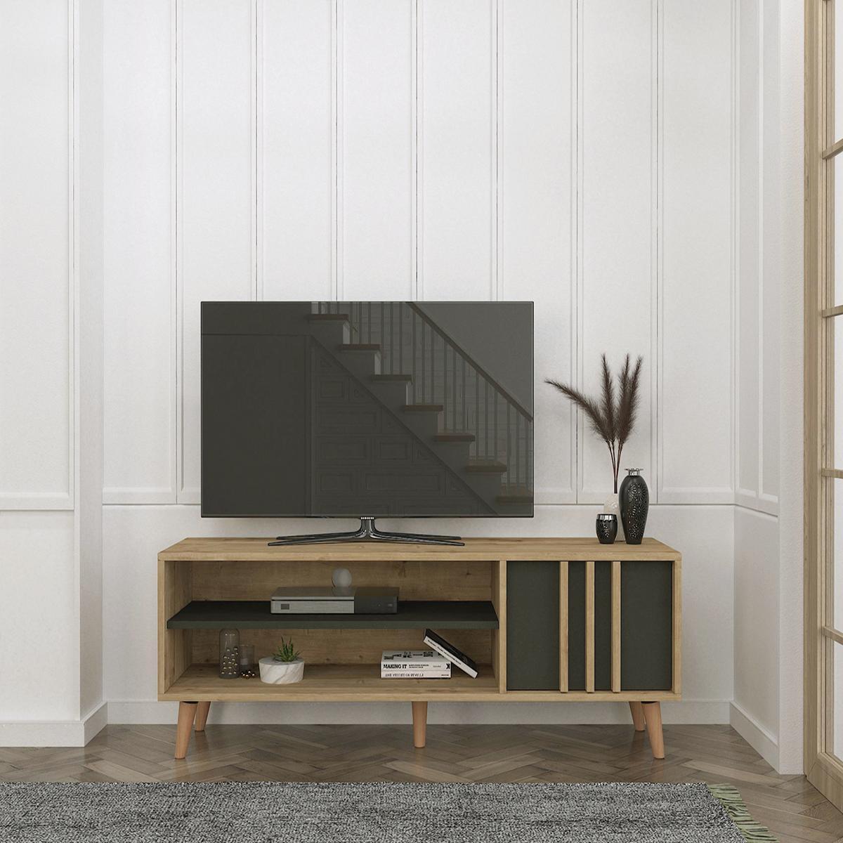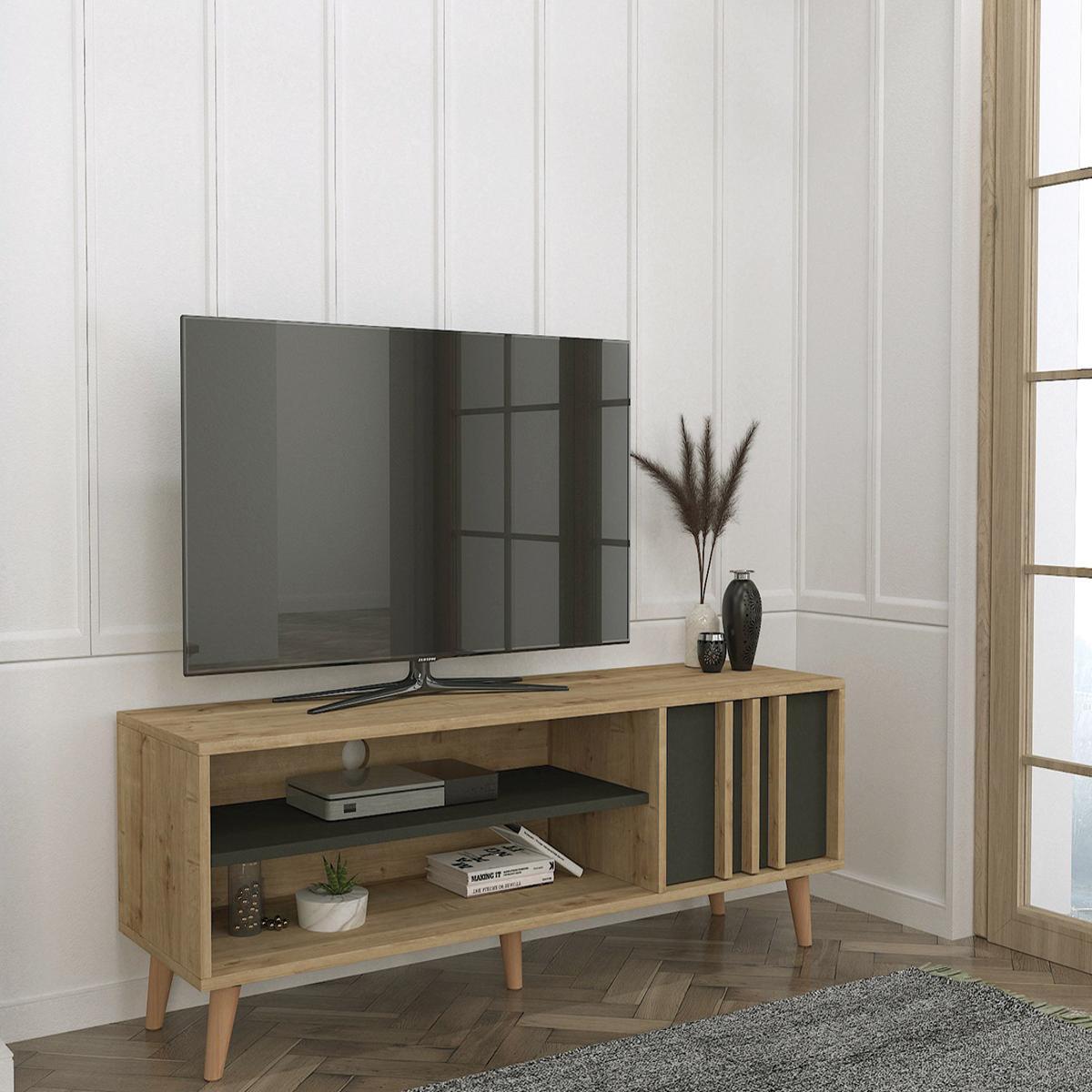 Έπιπλο Τηλεόρασης ArteLibre ANDROS Φυσικό/Ανθρακί Μοριοσανίδα/Μελαμίνη 140x40x50cm