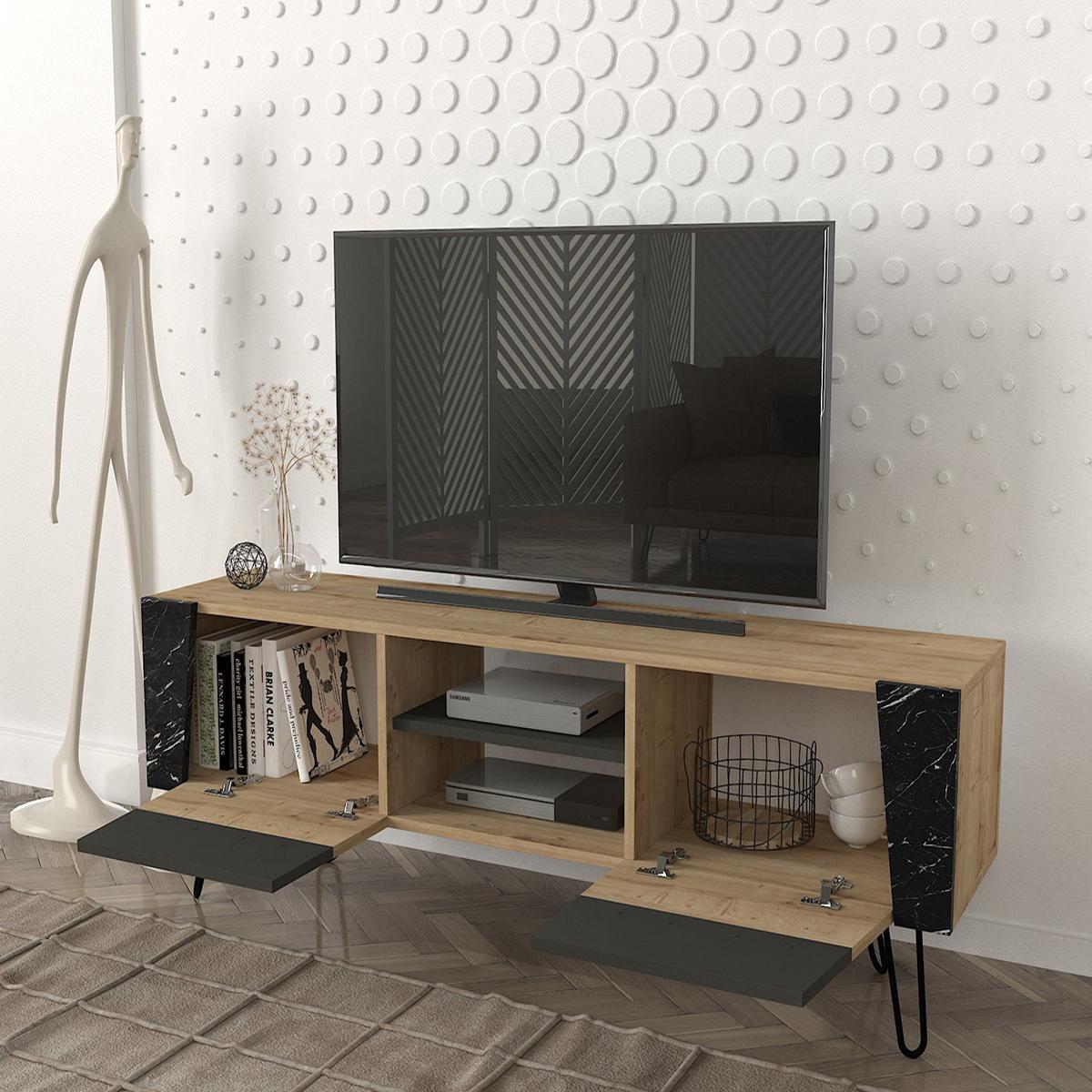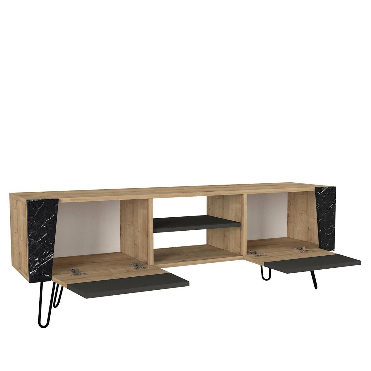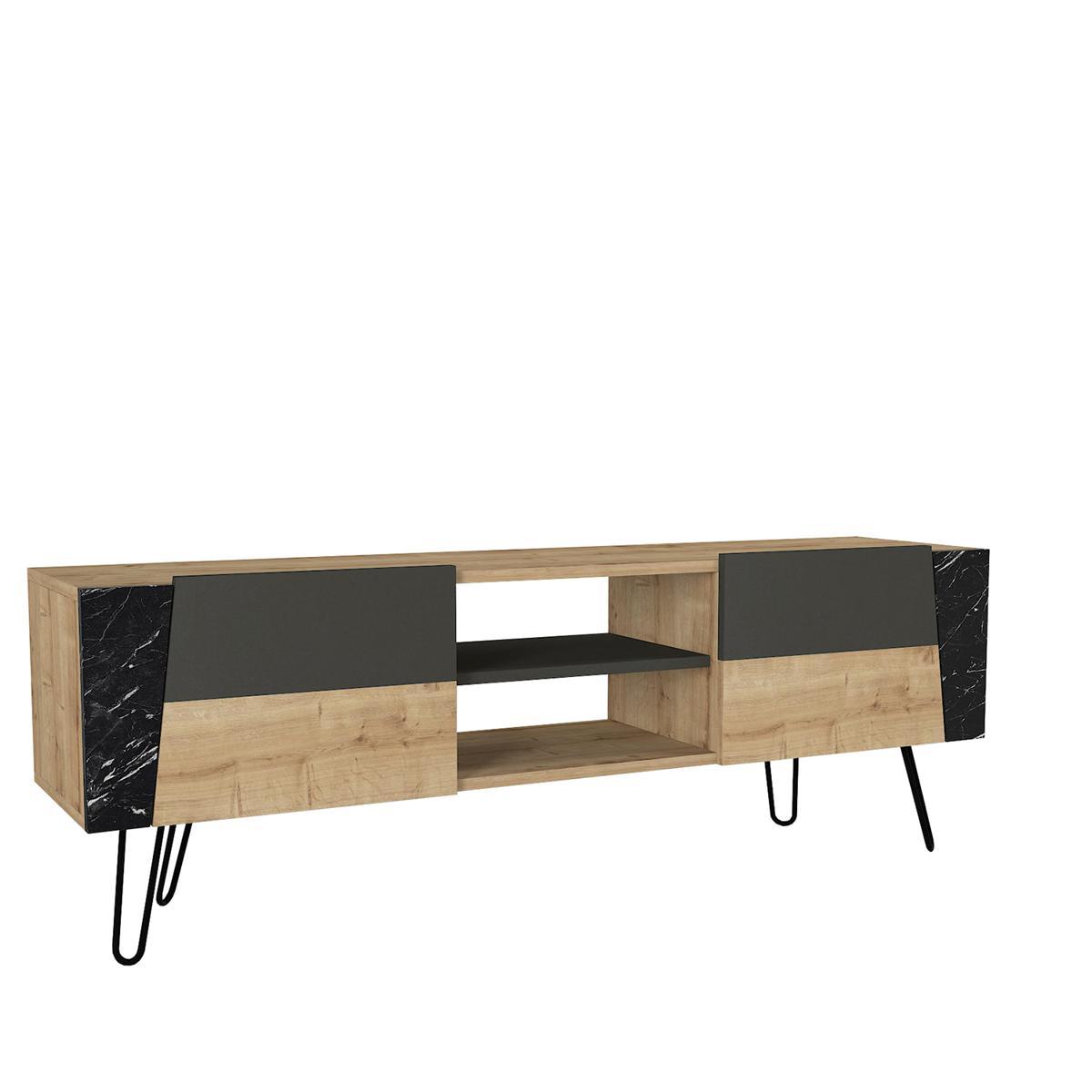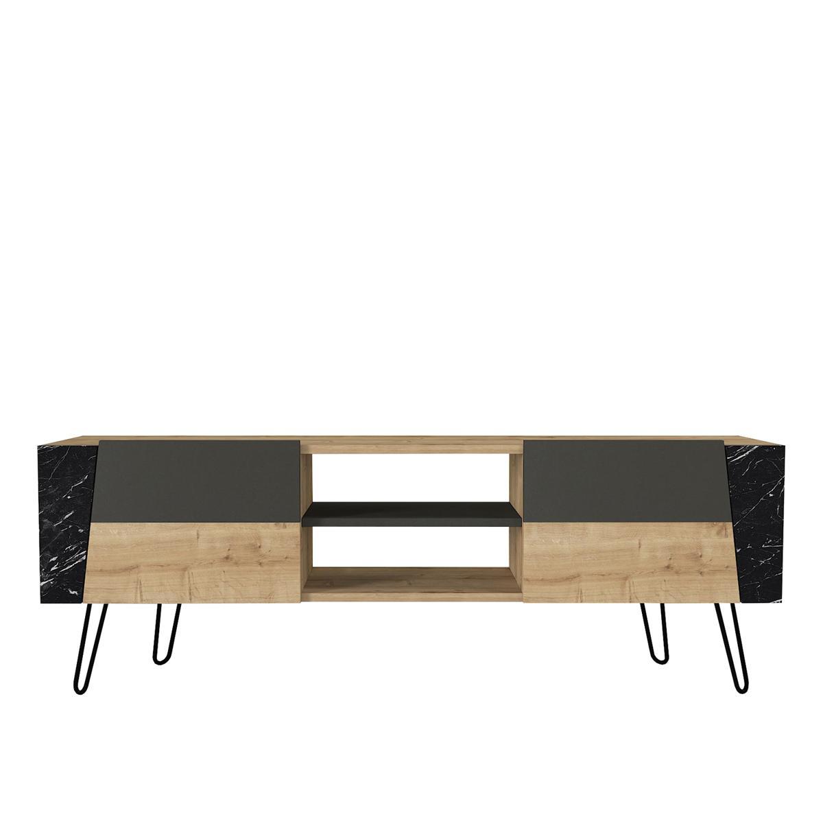 Έπιπλο Τηλεόρασης ArteLibre DIAPOROS Φυσικό/Μαύρο/Ανθρακί Μοριοσανίδα/Μελαμίνη 150x52x35cm