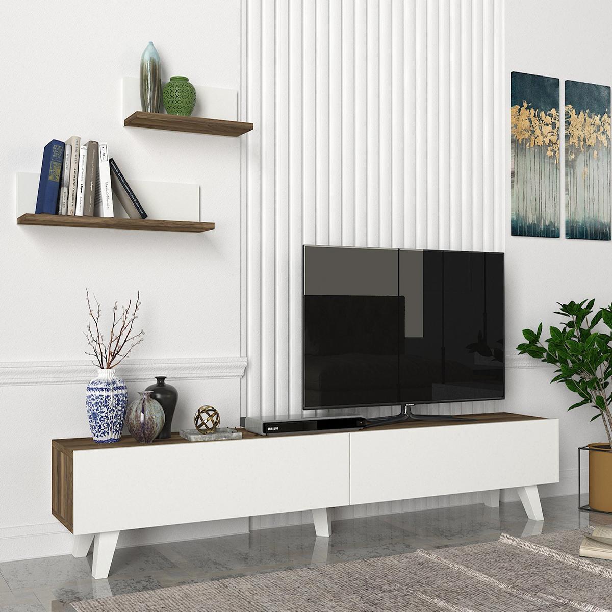 Έπιπλο Τηλεόρασης ArteLibre SIRNA Λευκό/Καρυδί Μοριοσανίδα/Μελαμίνη 180x31x32cm