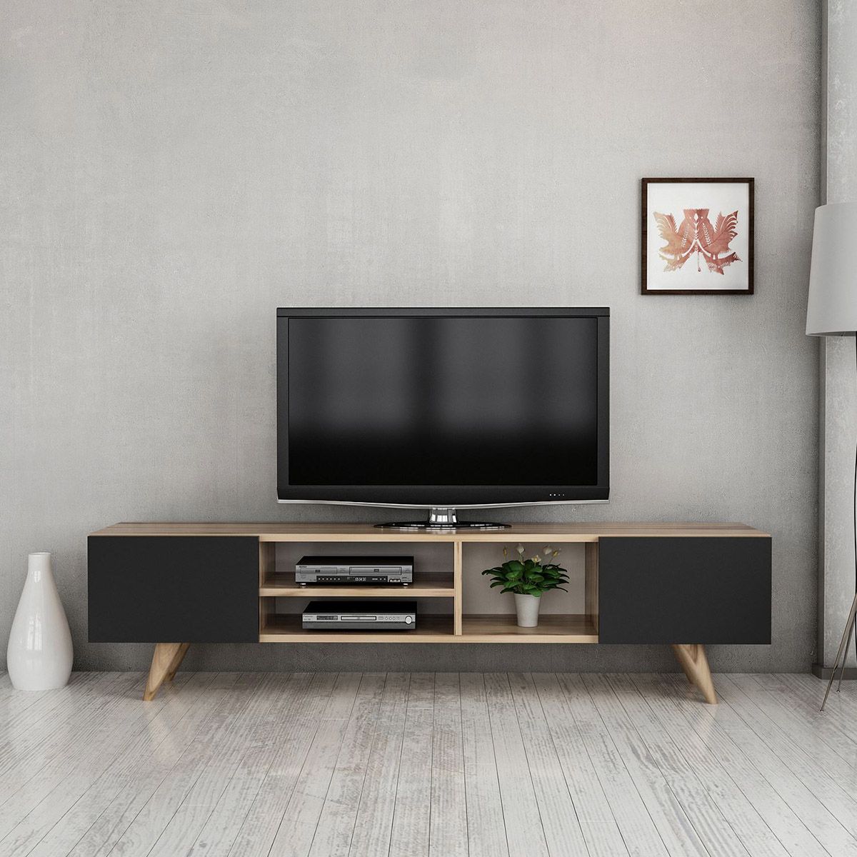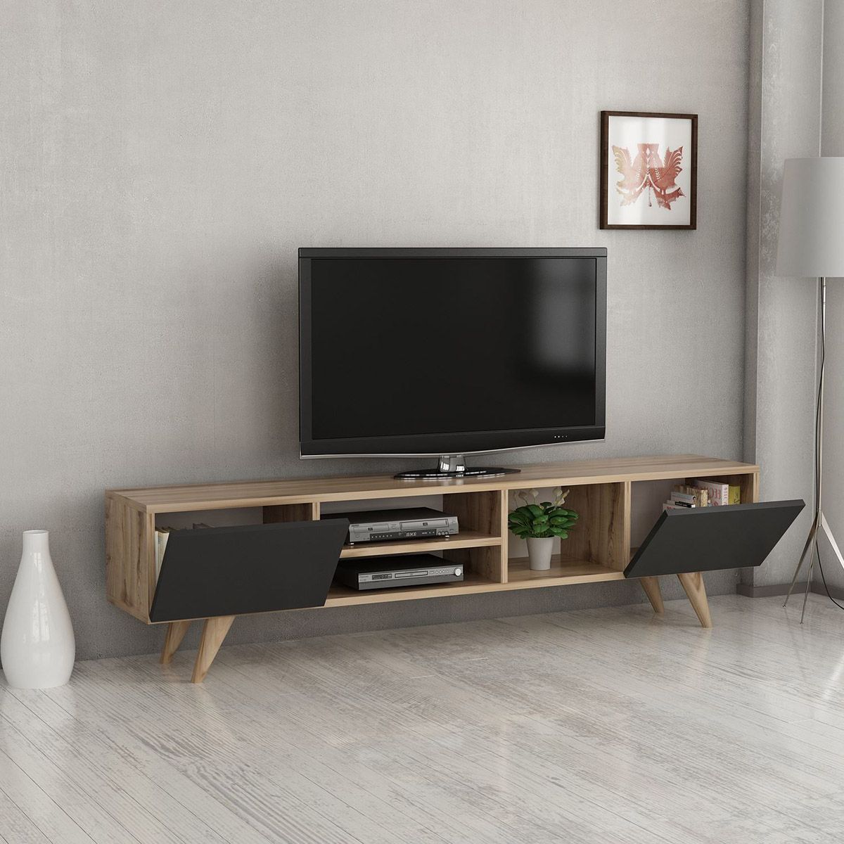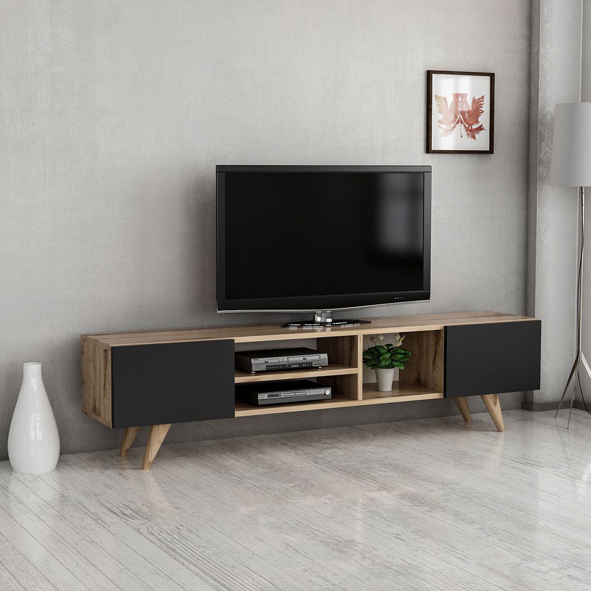 Σύνθετο έπιπλο τηλεόρασης SKOPELOS Καρυδιά/Μαύρο 160x30x40cm