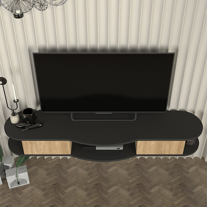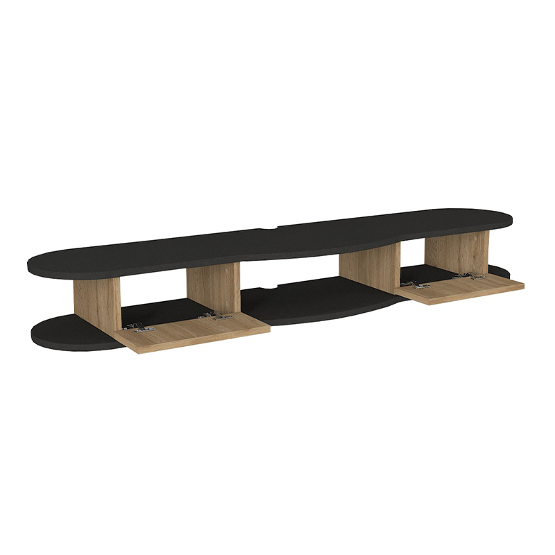 Έπιπλο Τηλεόρασης Επιτοίχιο Perk Megapap με led Χρώμα Ανθρακί - Sepet oak 150x35x19,2εκ.