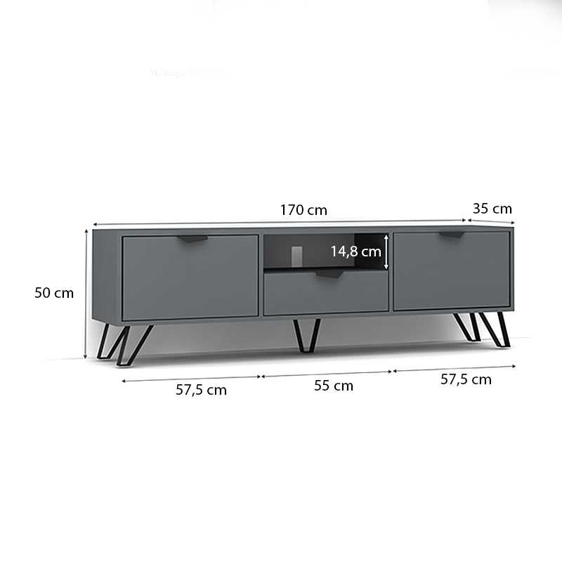 Έπιπλο Τηλεόρασης Jasmine Megapap από Μελαμίνη Χρώμα Γκρι 170x35x50εκ.