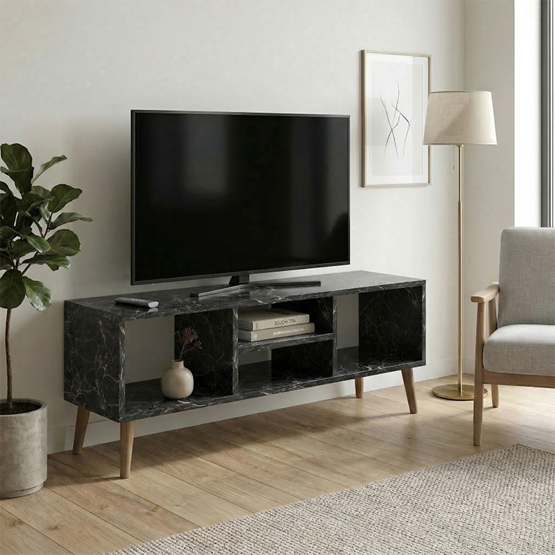 Έπιπλο Τηλεόρασης Loren Megapap Χρώμα Μαύρο εφέ Μαρμάρου 120x30x40εκ.