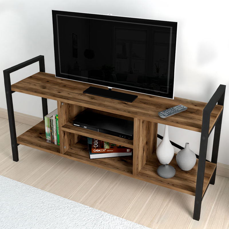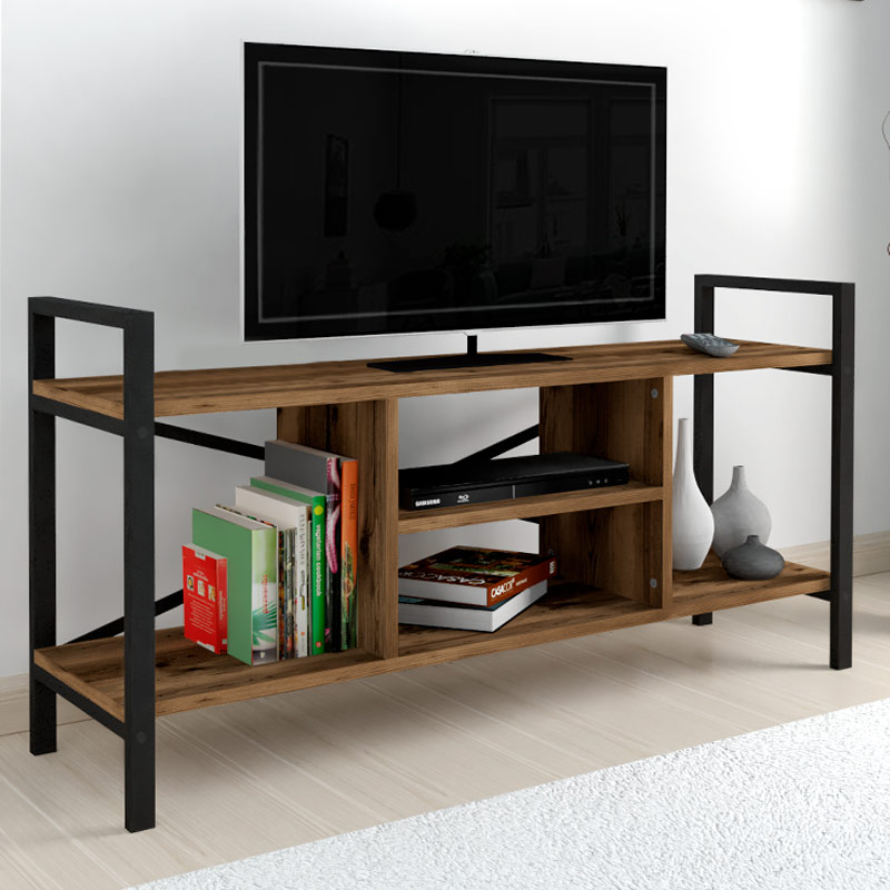 Έπιπλο Τηλεόρασης Santana Megapap Μεταλλικό - Μελαμίνης Χρώμα Μαύρο - Καπνιστή Καρυδιά 120x35x61εκ.
