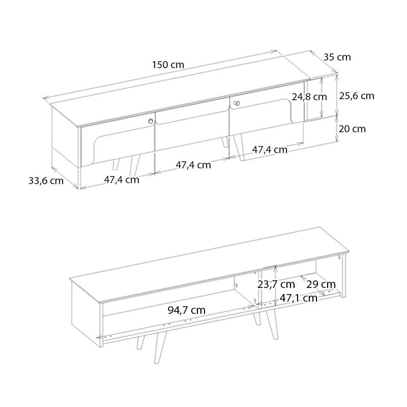 - Διαστάσεις: Μήκος 150 x Βάθος 35 x Ύψος 45,6 εκ.