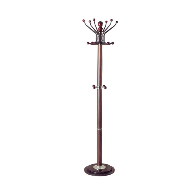 Καλόγερος μεταλλικός με καρυδί επένδυση PVC με πολλαπλές θέσεις για ρούχα, με ιστό Φ60χιλ. πάχους και μαρμάρινη βάση για απόλυτη αντοχή βάρους.