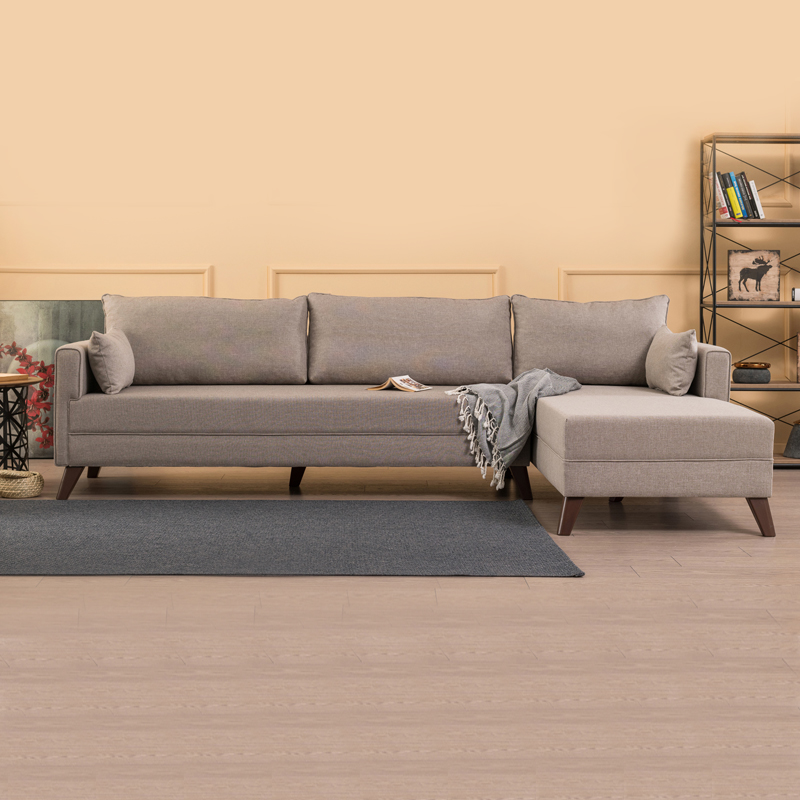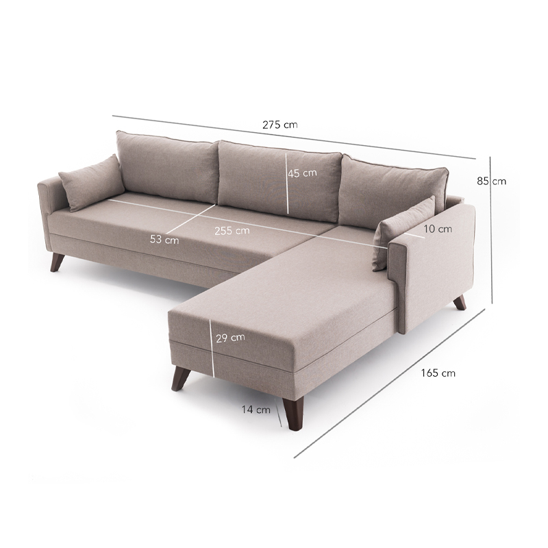 Γωνιακός Καναπές Bella Megapap Δεξιά Γωνία Υφασμάτινος Χρώμα Κρεμ 275x165x85εκ.