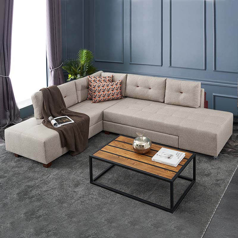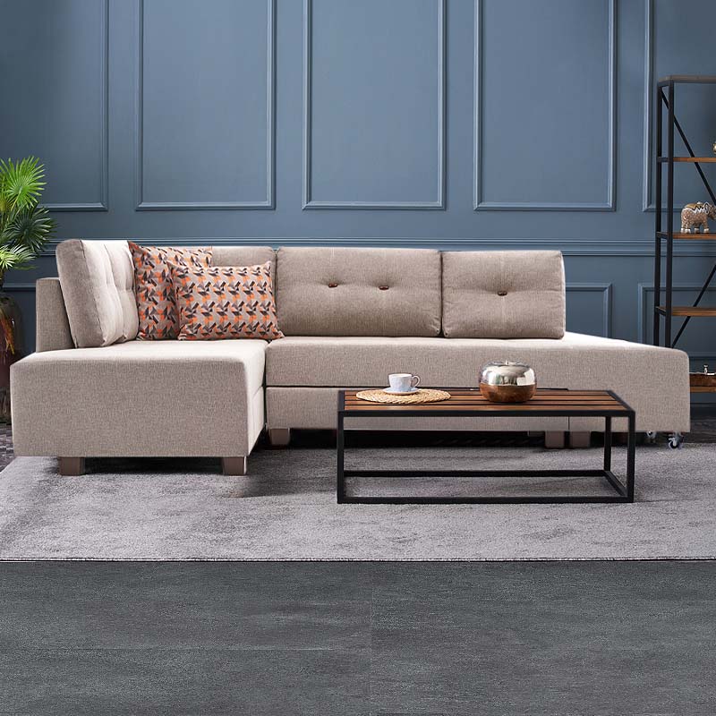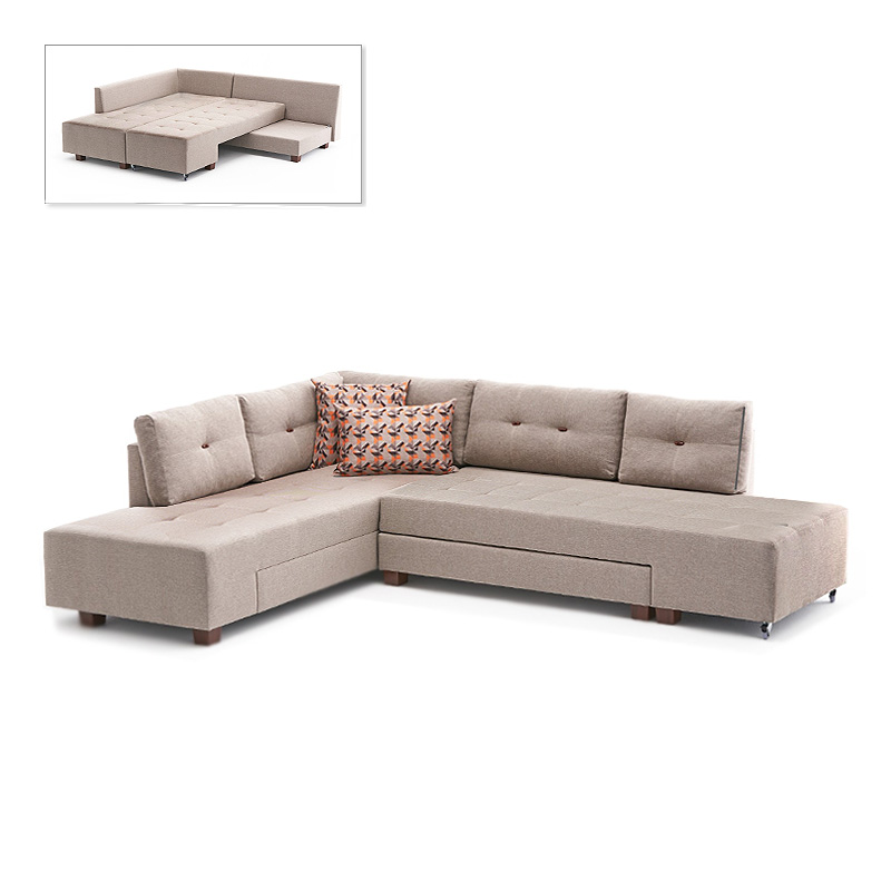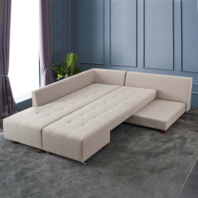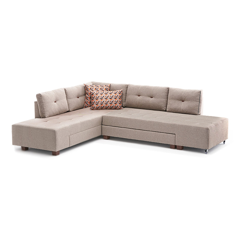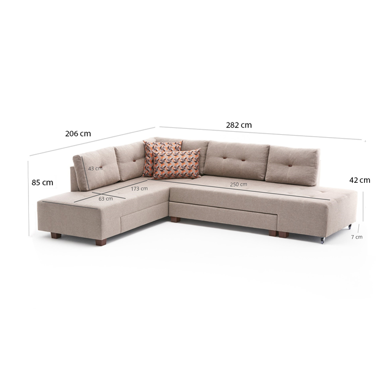 Γωνιακός Καναπές - Κρεβάτι Manama Megapap Αριστερή Γωνία Υφασμάτινος Χρώμα Κρεμ 280x206x85εκ.