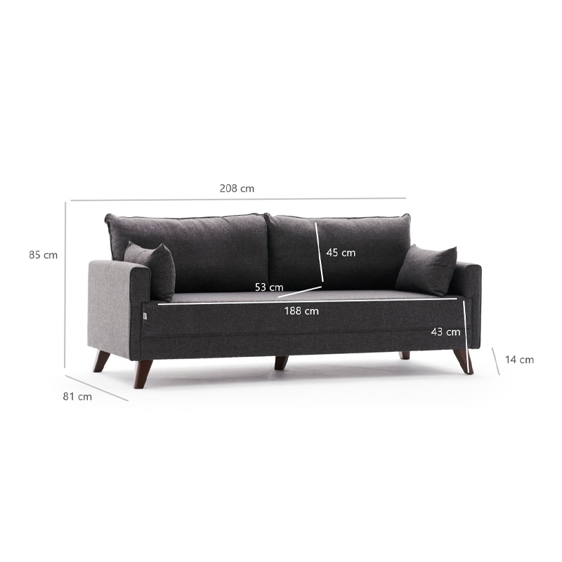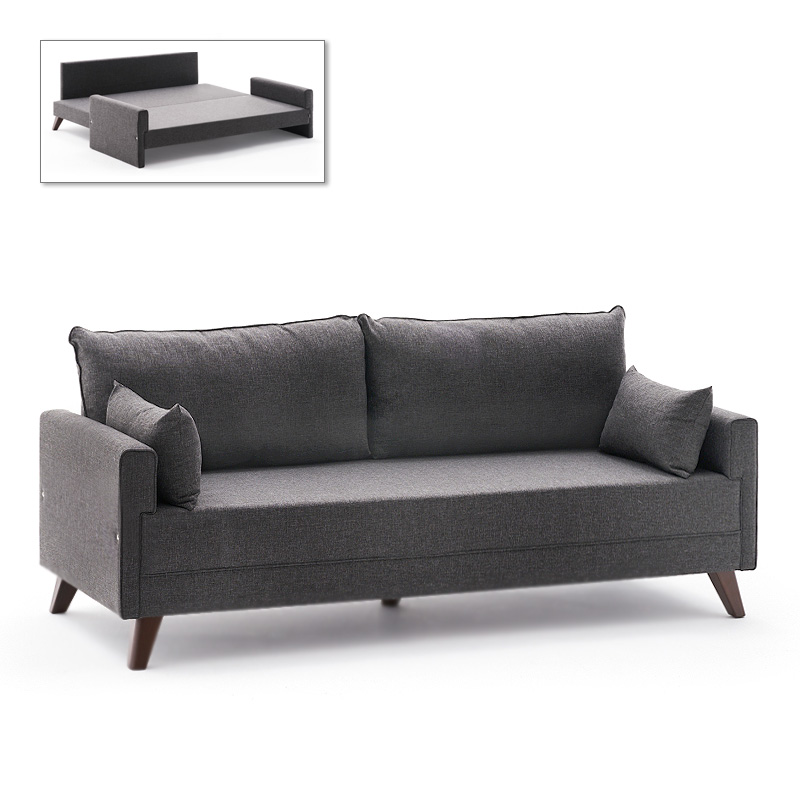 Καναπές - Κρεβάτι Bella Megapap Τριθέσιος Υφασμάτινος Χρώμα Ανθρακί 208x81x85εκ.