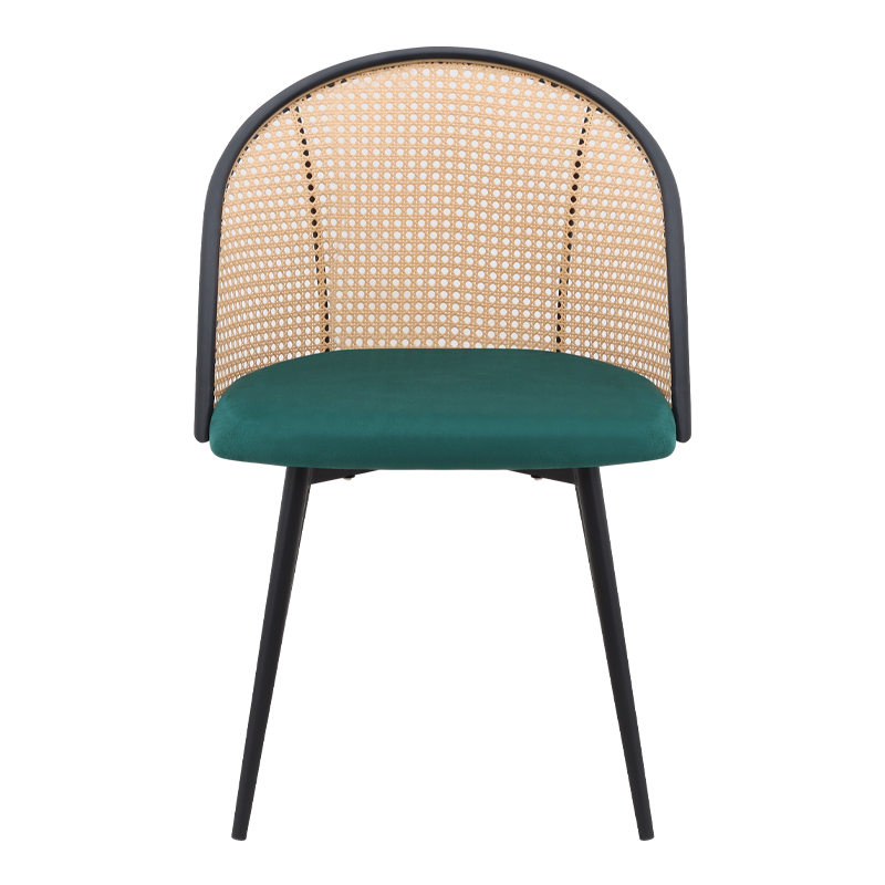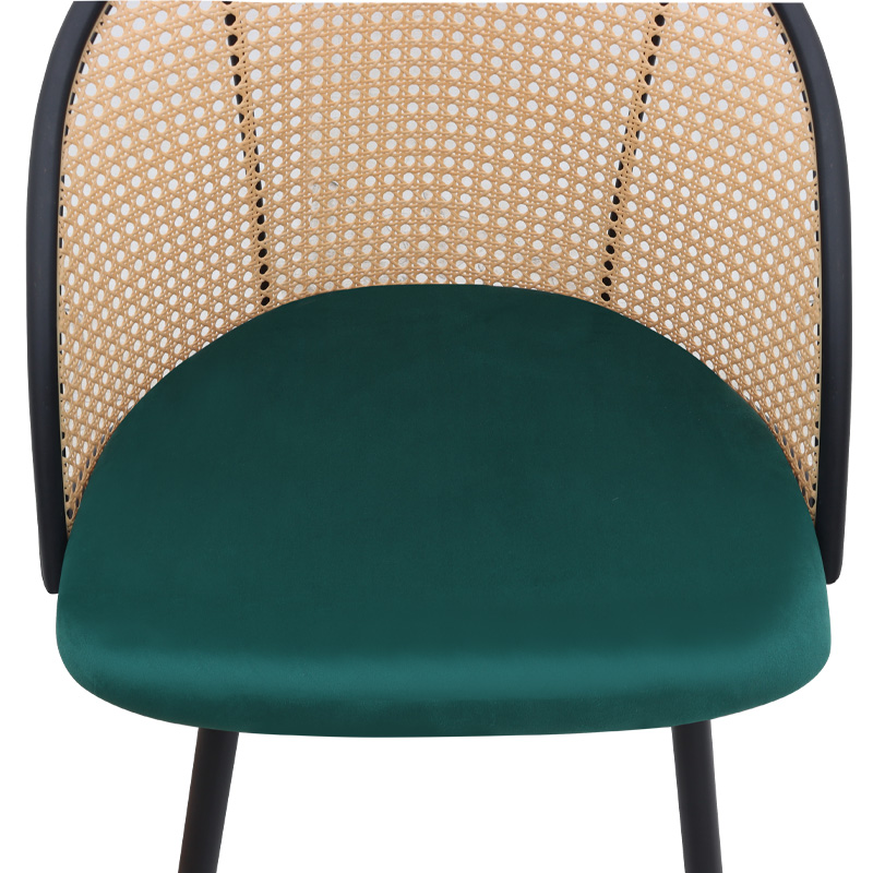 - Χρώμα: Κυπαρισσί βελούδινο κάθισμα - πλάτη pe rattan σε φυσικό χρώμα - μαύρα μεταλλικά πόδια.