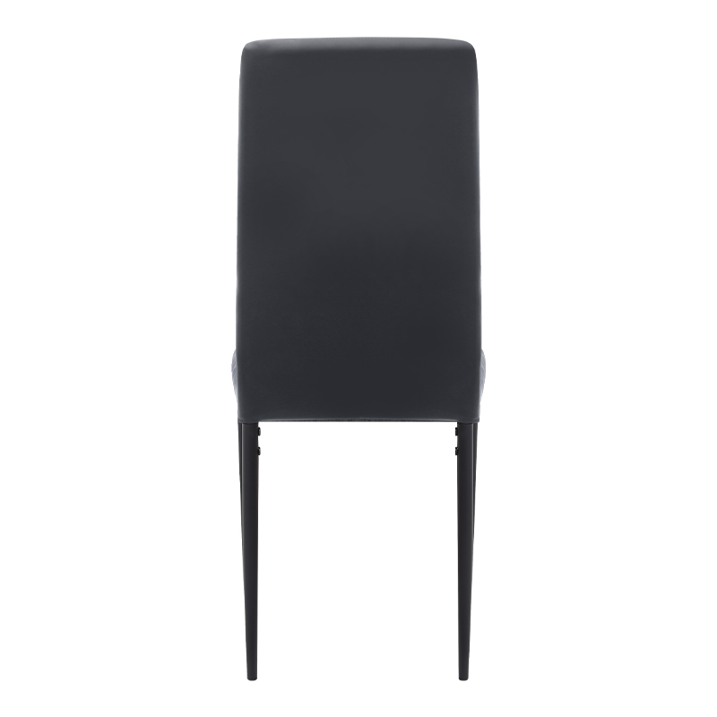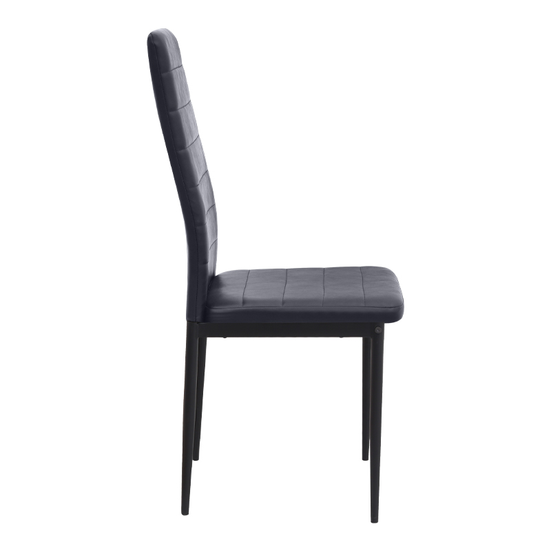 Η καρέκλα Rosa διαθέτει κάθισμα από PU σε μαύρο χρώμα και μαύρα μεταλλικά πόδια, προσφέροντας αντοχή και πρακτικότητα στην καθημερινή χρήση. Ο λιτός, μοντέρνος σχεδιασμός της την κάνει κατάλληλη για κάθε τύπο τραπεζαρίας, οικιακής ή επαγγελματικής, προσφέροντας μια διακριτική αλλά κομψή παρουσία στον χώρο.