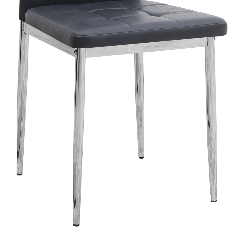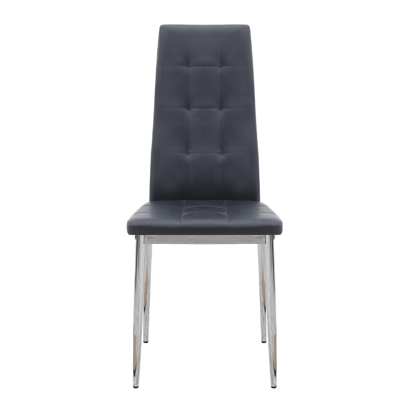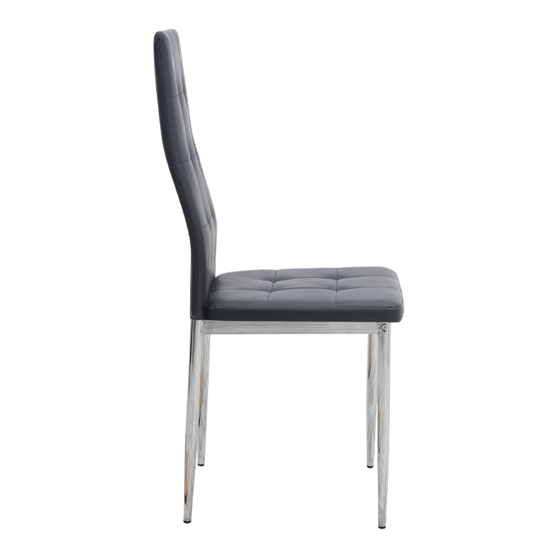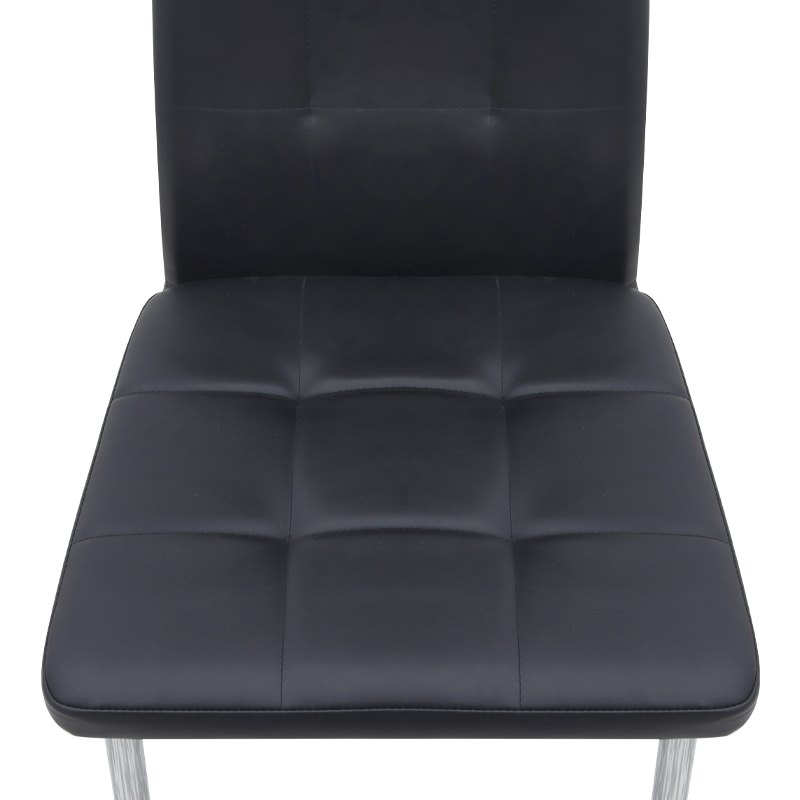 Η καρέκλα Rosa διαθέτει κάθισμα από τεχνόδερμα PU σε μαύρο χρώμα και μεταλλικά πόδια χρωμίου, προσφέροντας αντοχή και πρακτικότητα στην καθημερινή χρήση. Ο λιτός, μοντέρνος σχεδιασμός της την κάνει κατάλληλη για κάθε τύπο τραπεζαρίας, οικιακής ή επαγγελματικής, προσφέροντας μια διακριτική αλλά κομψή παρουσία στον χώρο.