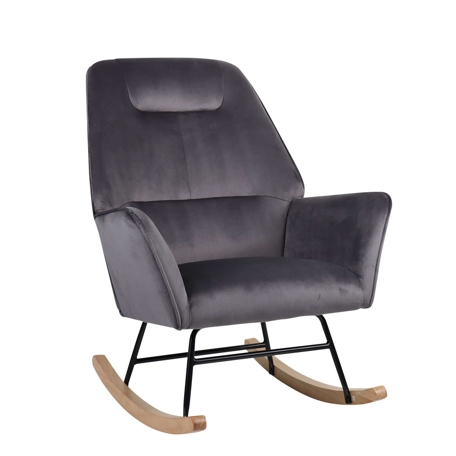 Πολυθρόνα Κουνιστή ArteLibre BERTIE Γκρι Βελούδο/Μέταλλο/Ξύλο 87x72x96cm
