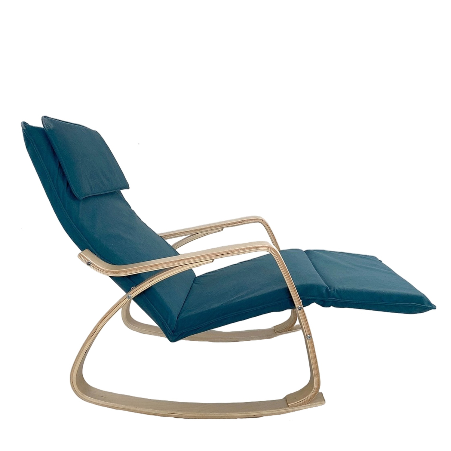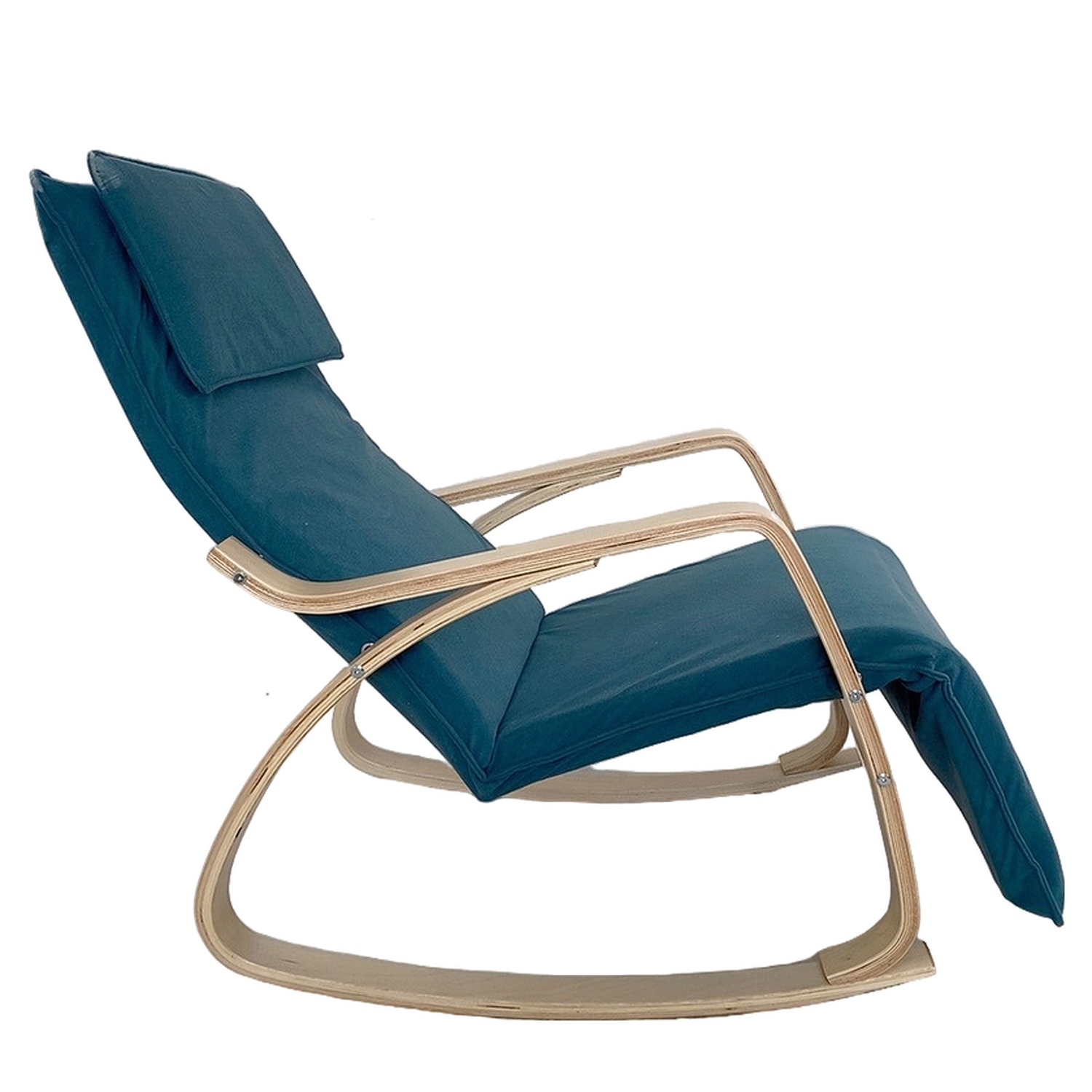 Πολυθρόνα Κουνιστή ArteLibre LUNDRA Μπλε/Φυσικό Ύφασμα/Ξύλο 67x127x91cm
