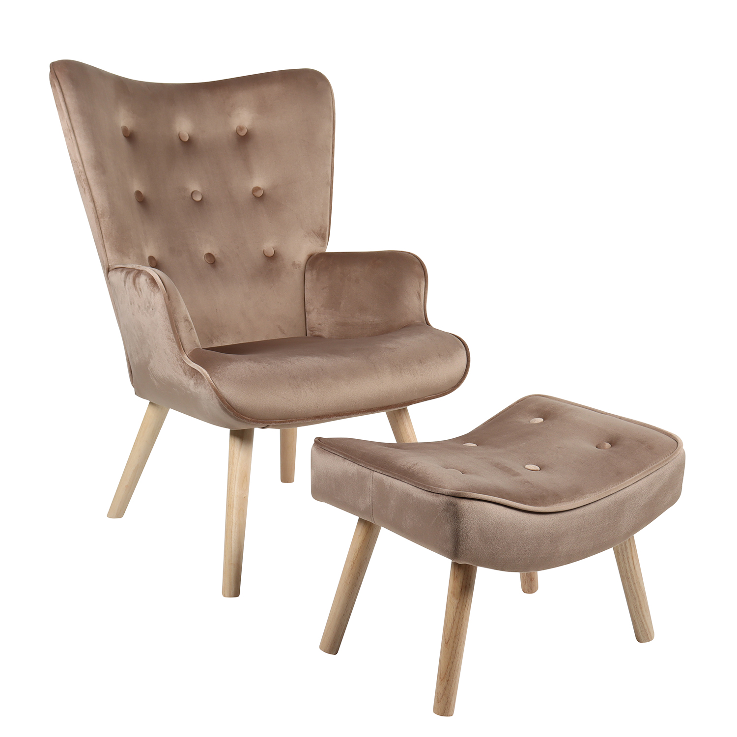 Πολυθρόνα Μπερζέρα Με Υποπόδιο ArteLibre ANIDORI Καφέ Βελούδο/Ξύλο 73x69x96cm