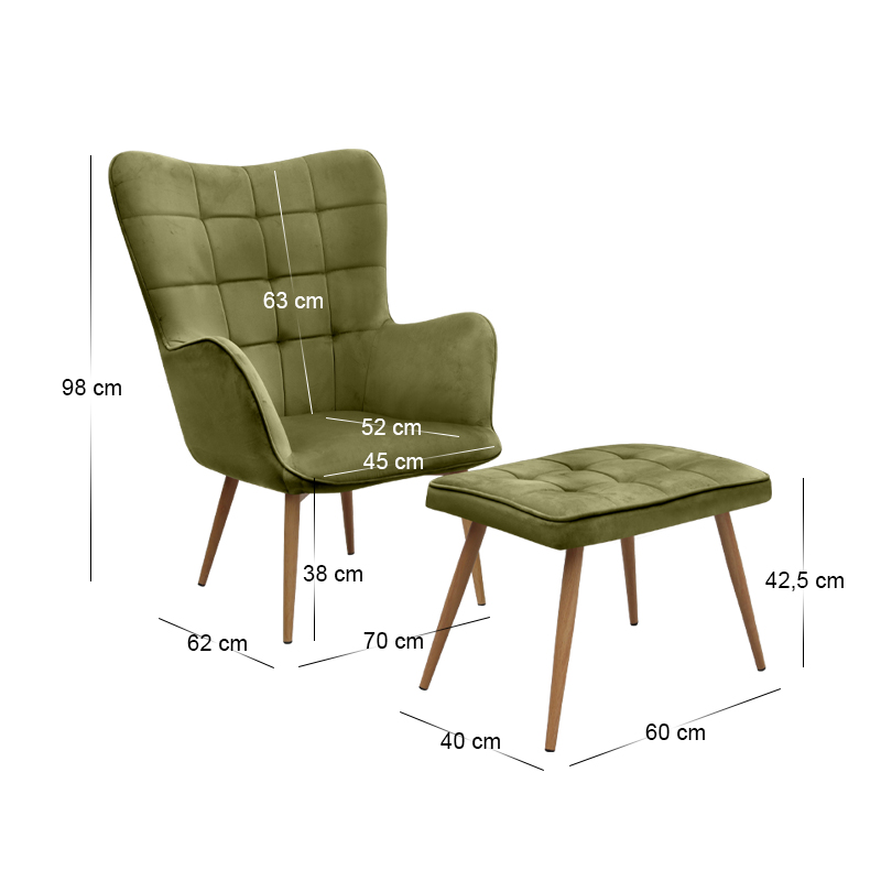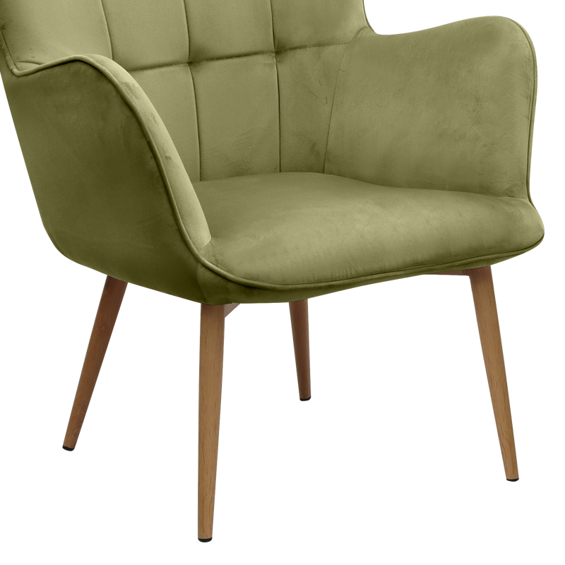- Χρώμα: Λαδί βελούδο με μεταλλικά πόδια σε φυσική απόχρωση ξύλου.