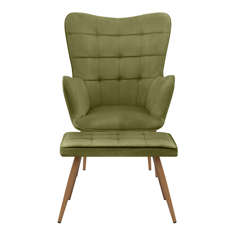 Η μπερζέρα με υποπόδιο Lily σε λαδί βελούδο είναι ένα statement κομμάτι που φέρνει στο χώρο σας ζεστασιά, κομψότητα και απόλυτη άνεση. Η πλάτη τύπου “wingback” αγκαλιάζει το σώμα προσφέροντας εργονομική στήριξη, ενώ το απαλό βελούδινο ύφασμα αναδεικνύει το design και δημιουργεί αίσθηση πολυτέλειας. Οι καπιτονέ ραφές στην πλάτη και στο υποπόδιο ενισχύουν τον χαρακτήρα της πολυθρόνας και χαρίζουν μια διαχρονική, εκλεπτυσμένη εικόνα. Τα πόδια σε φυσική απόχρωση ξύλου, κατασκευασμένα από ανθεκτικό μέταλλο, προσφέρουν σταθερότητα και ολοκληρώνουν το κομψό σύνολο. Μια ιδανική επιλογή για σαλόνια, υπνοδωμάτια, ή ακόμα και κομψούς επαγγελματικούς χώρους, που θα τραβήξει σίγουρα τα βλέμματα και θα αναβαθμίσει την αισθητική κάθε περιβάλλοντος.