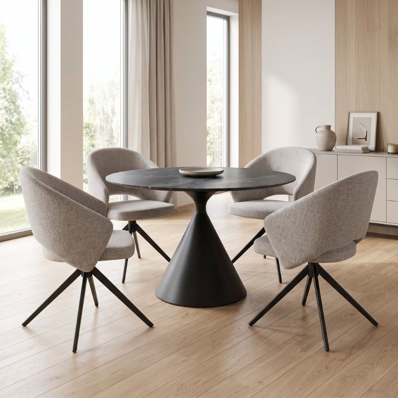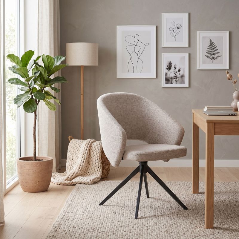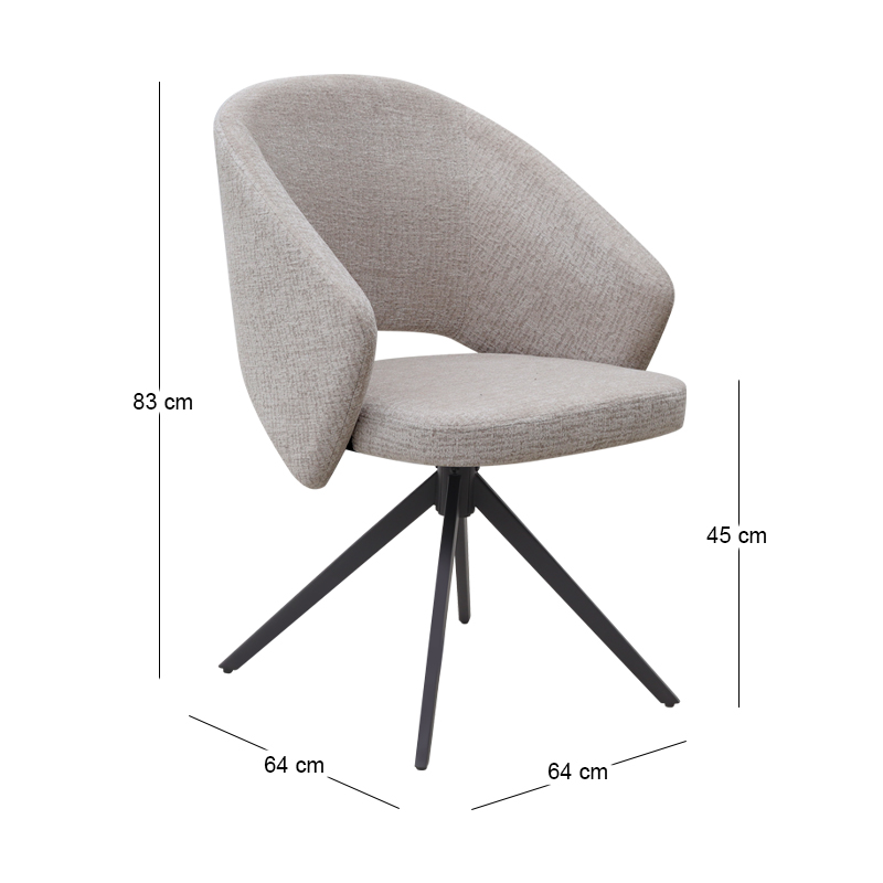 Πολυθρόνα Τραπεζαρίας Milano Megapap Περιστρεφόμενη Χρώμα Ανοιχτό Μπεζ Ύφασμα - Μεταλλικό Μαύρο Πόδι 64x64x83εκ.