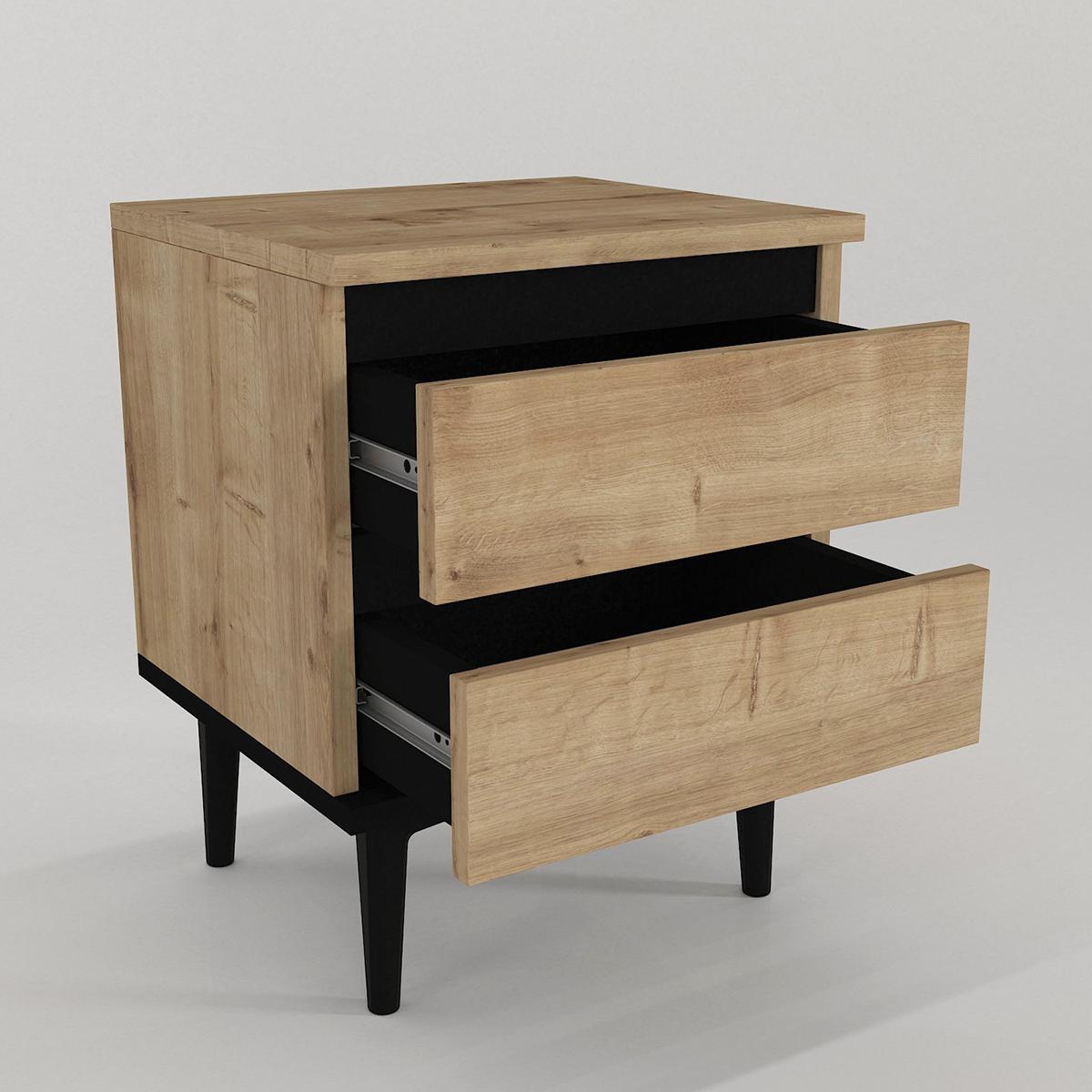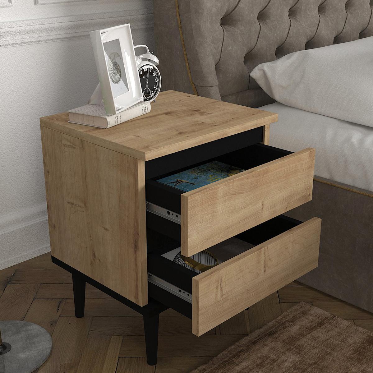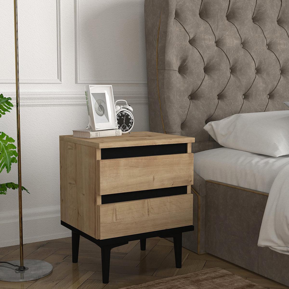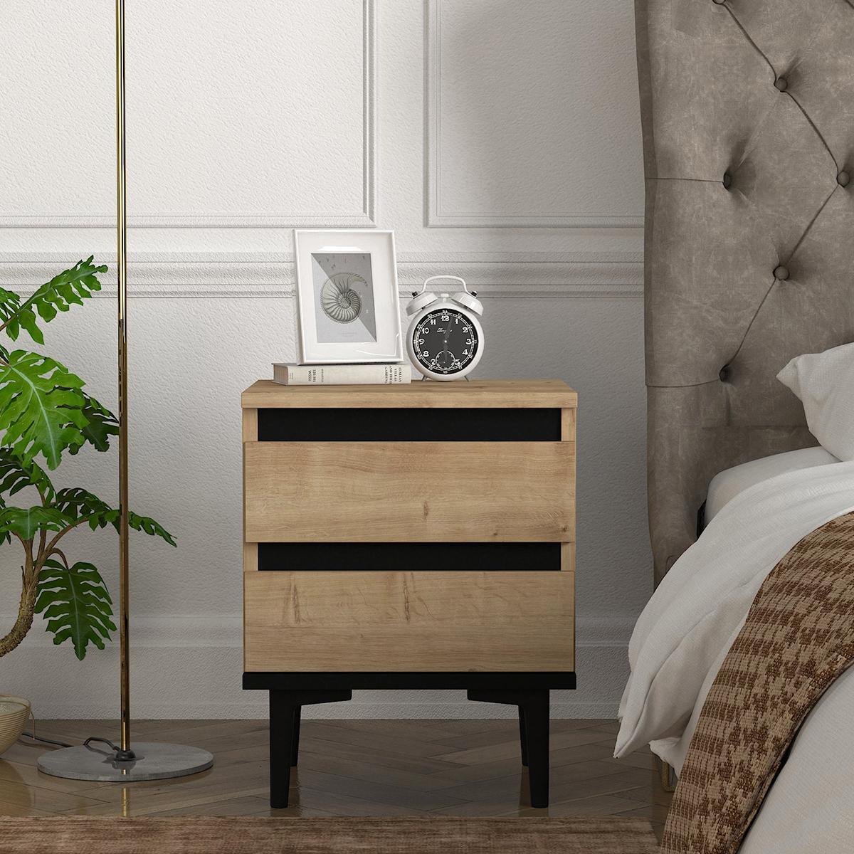 Κομοδίνο ArteLibre ABBOT Φυσικό/Μαύρο Μοριοσανίδα/Μελαμίνη 40x35x50.6cm