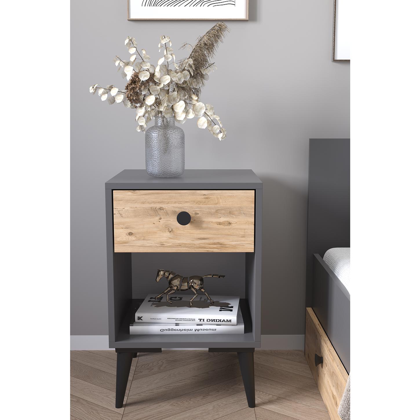 Κομοδίνο ArteLibre AMARI Ανθρακί/Δρυς Μοριοσανίδα 43x43x67.5cm