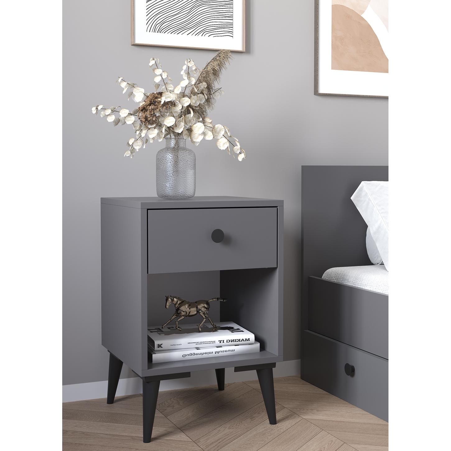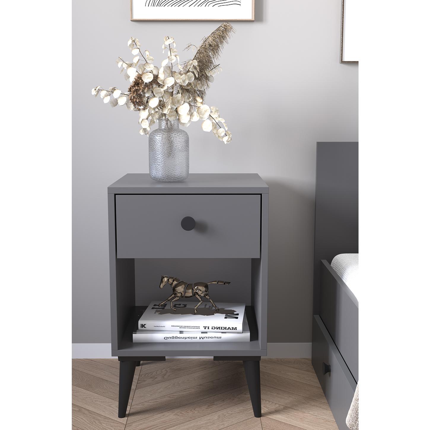 Κομοδίνο ArteLibre AMARI Ανθρακί Μοριοσανίδα 43x43x67.5cm