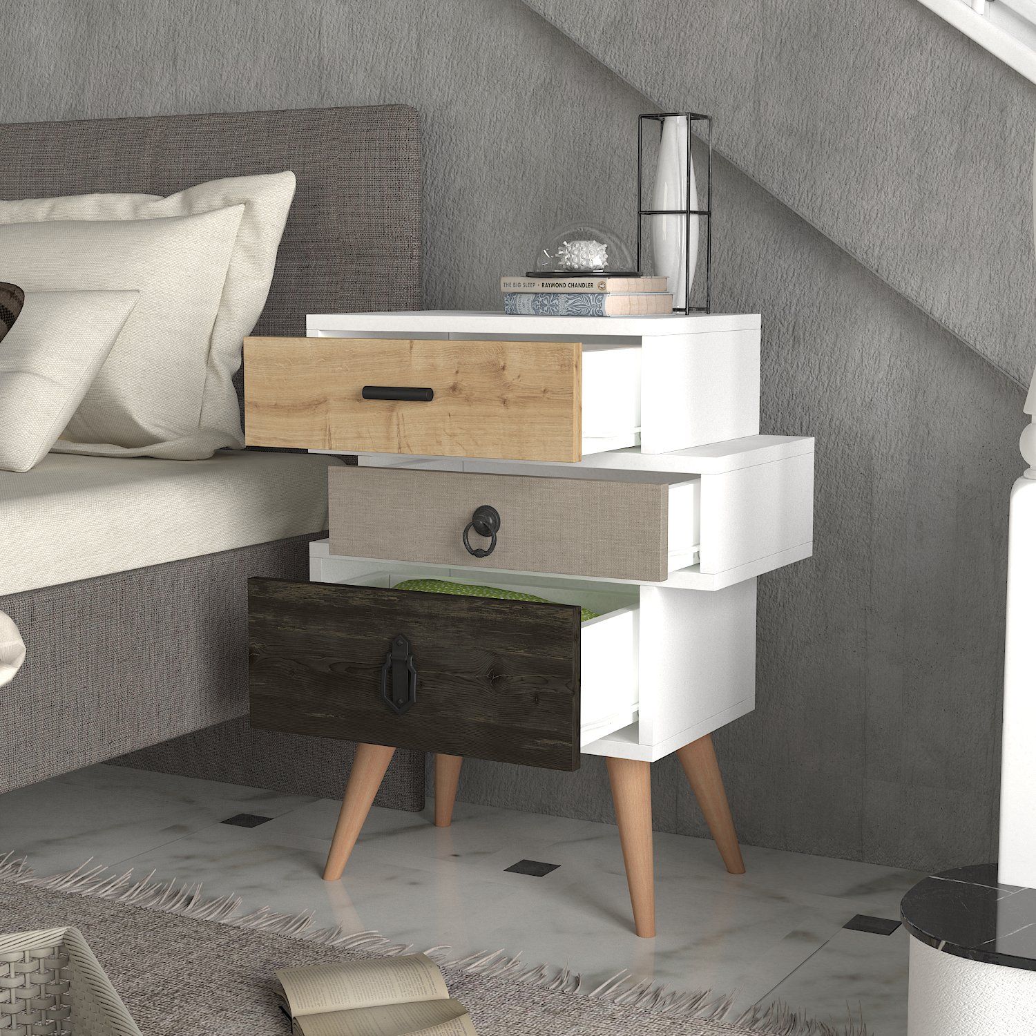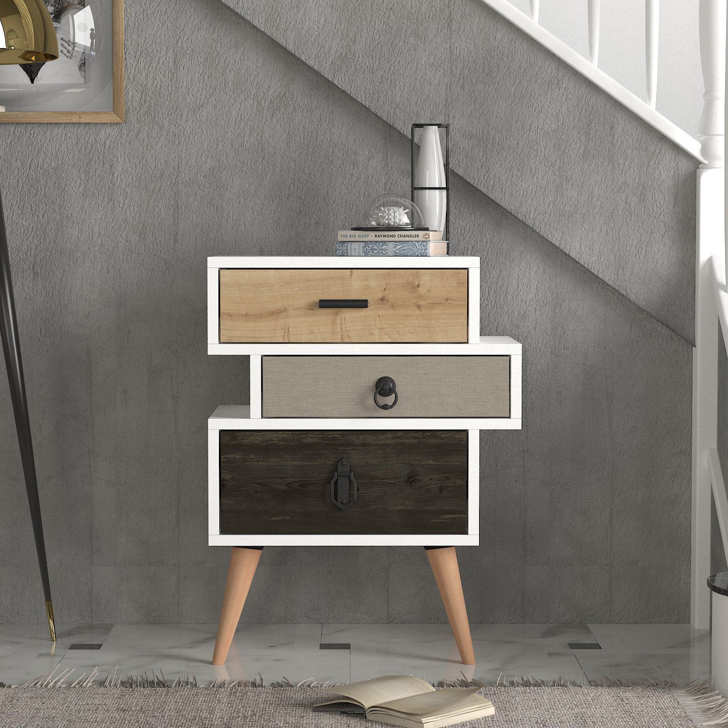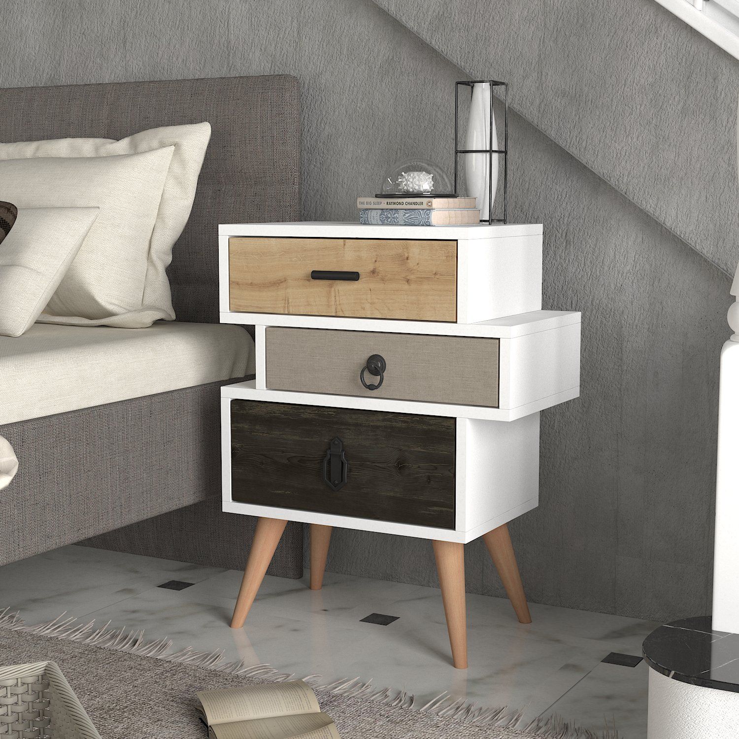 Κομοδίνο ArteLibre KIMOLOS Λευκό/Φυσικό/Καφέ 52x30x68cm