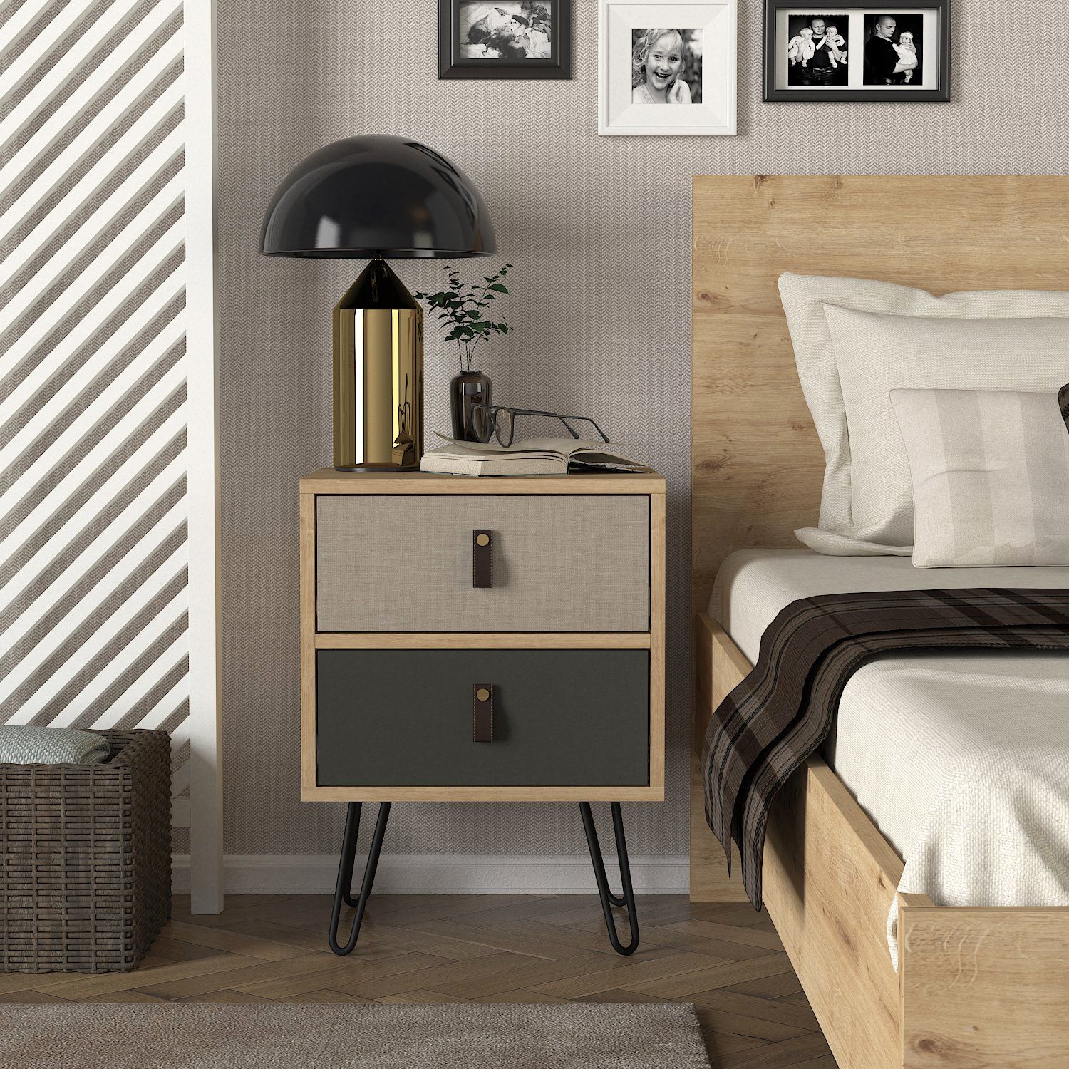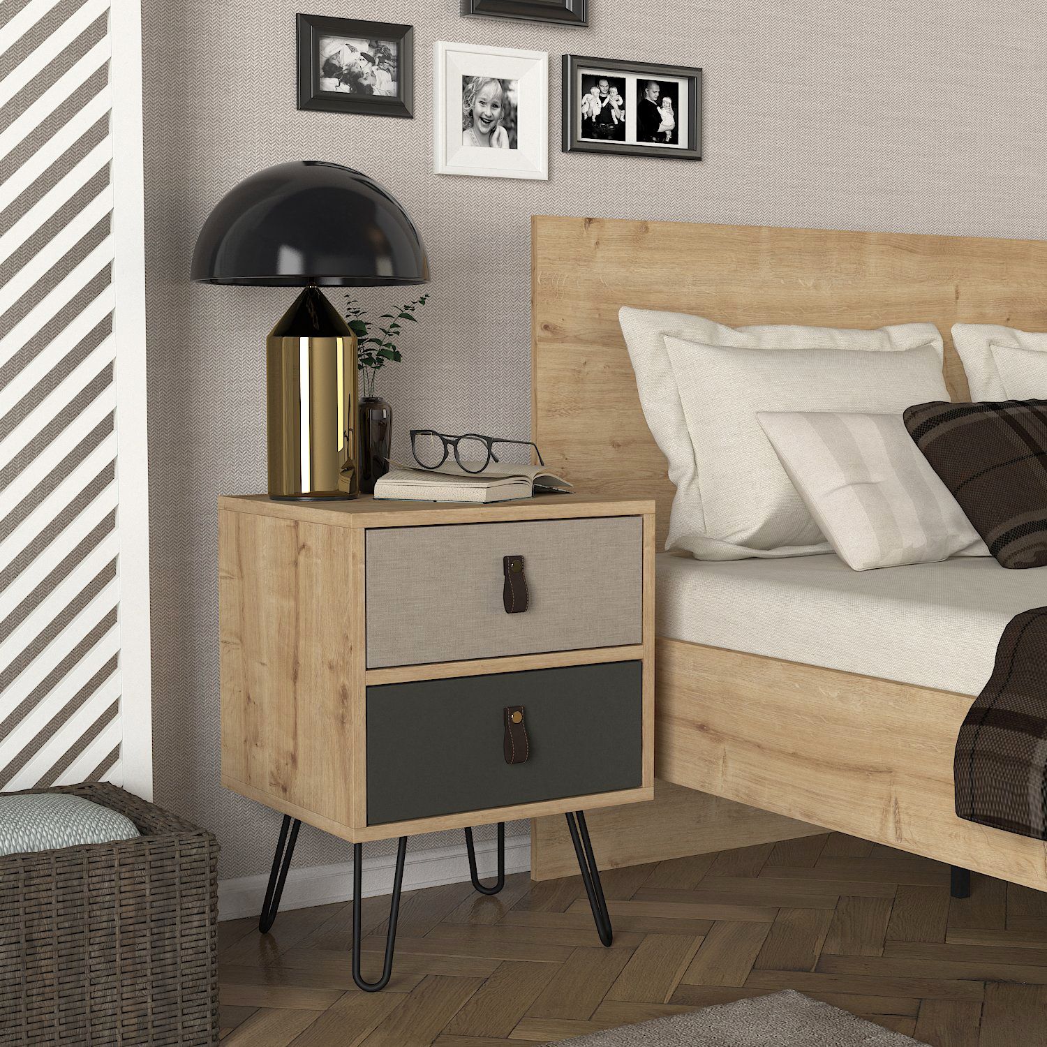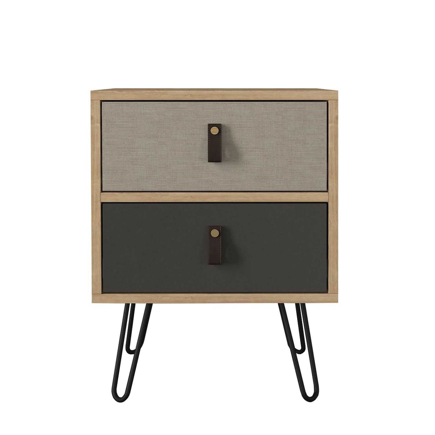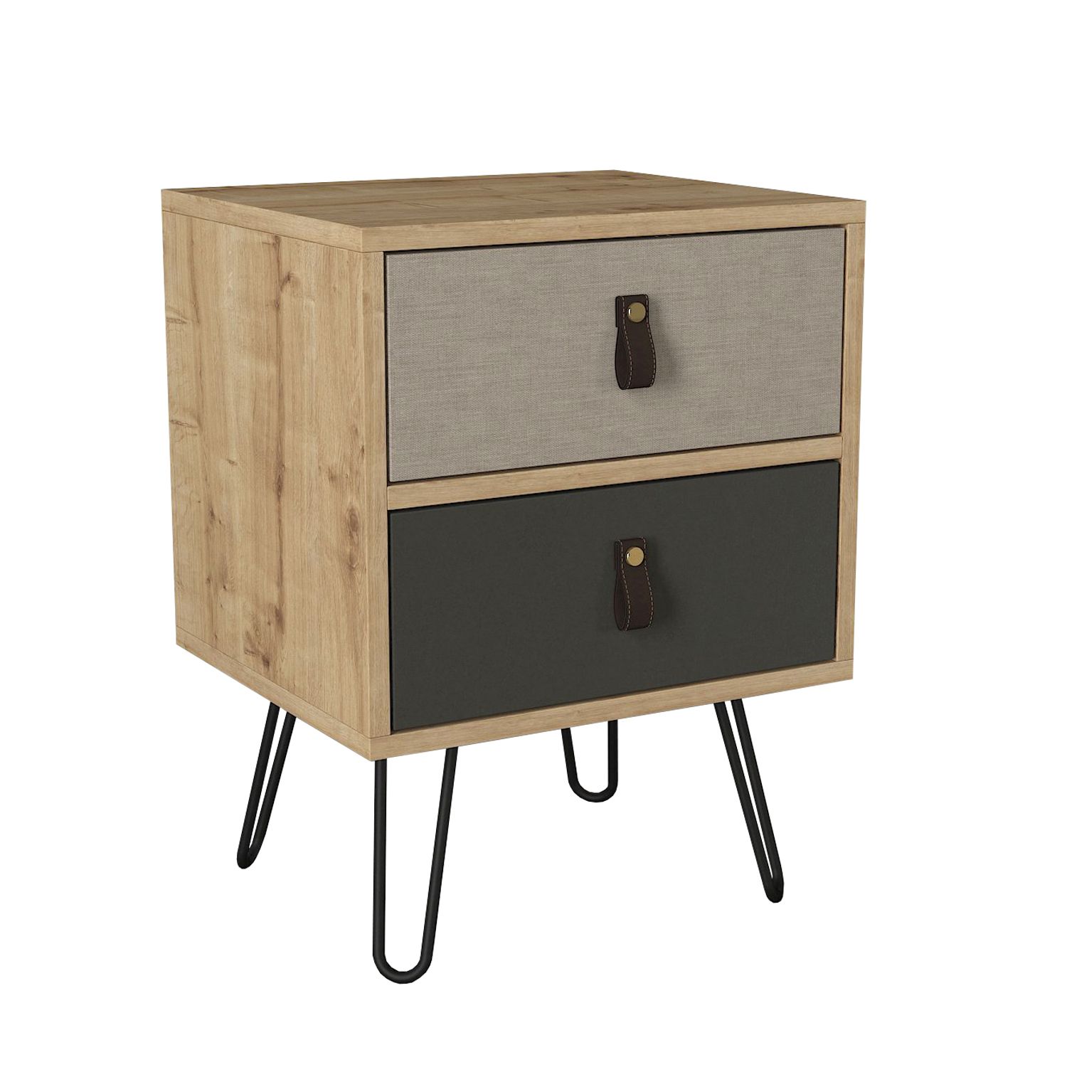 Κομοδίνο ArteLibre TILOS Φυσικό/Ανθρακί/Ανοιχτό Καφέ 45x39x60cm