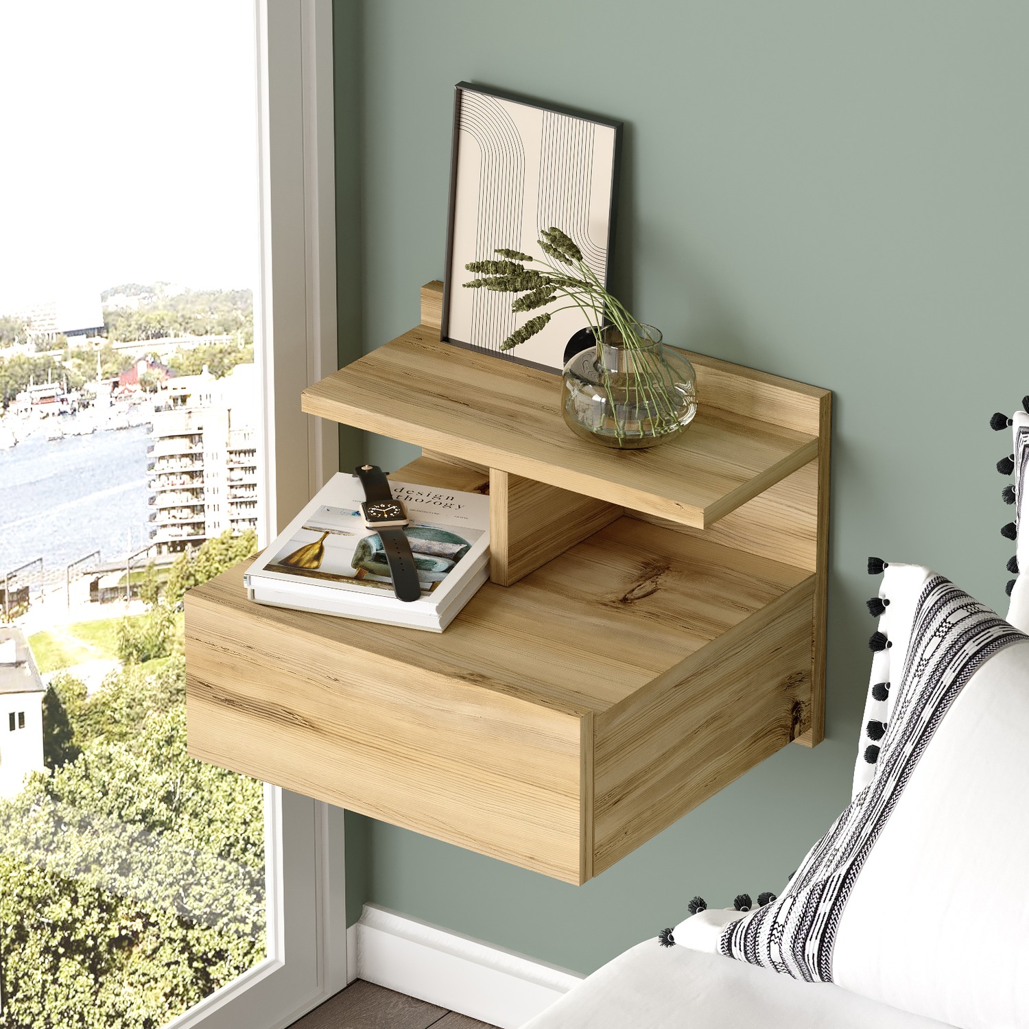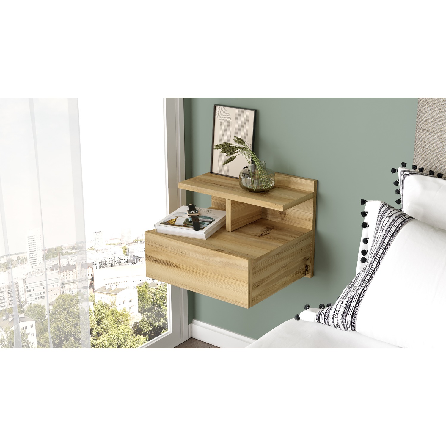 Κομοδίνο Επιτοίχιο ArteLibre CHALK Φυσικό Μοριοσανίδα 40x35.6x32cm