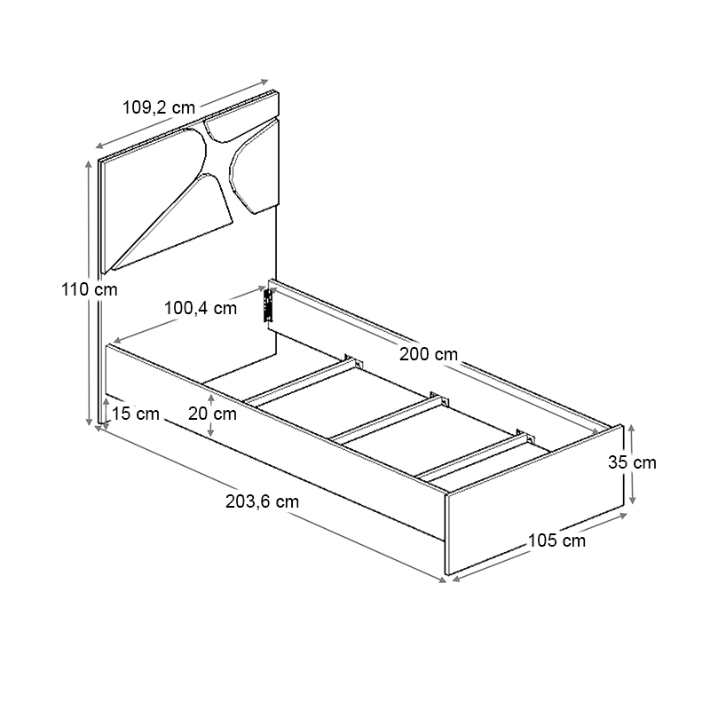 - Διαστάσεις κρεβατιού: Μήκος 109,2 x Βάθος 203,6 x Ύψος 110 εκ.