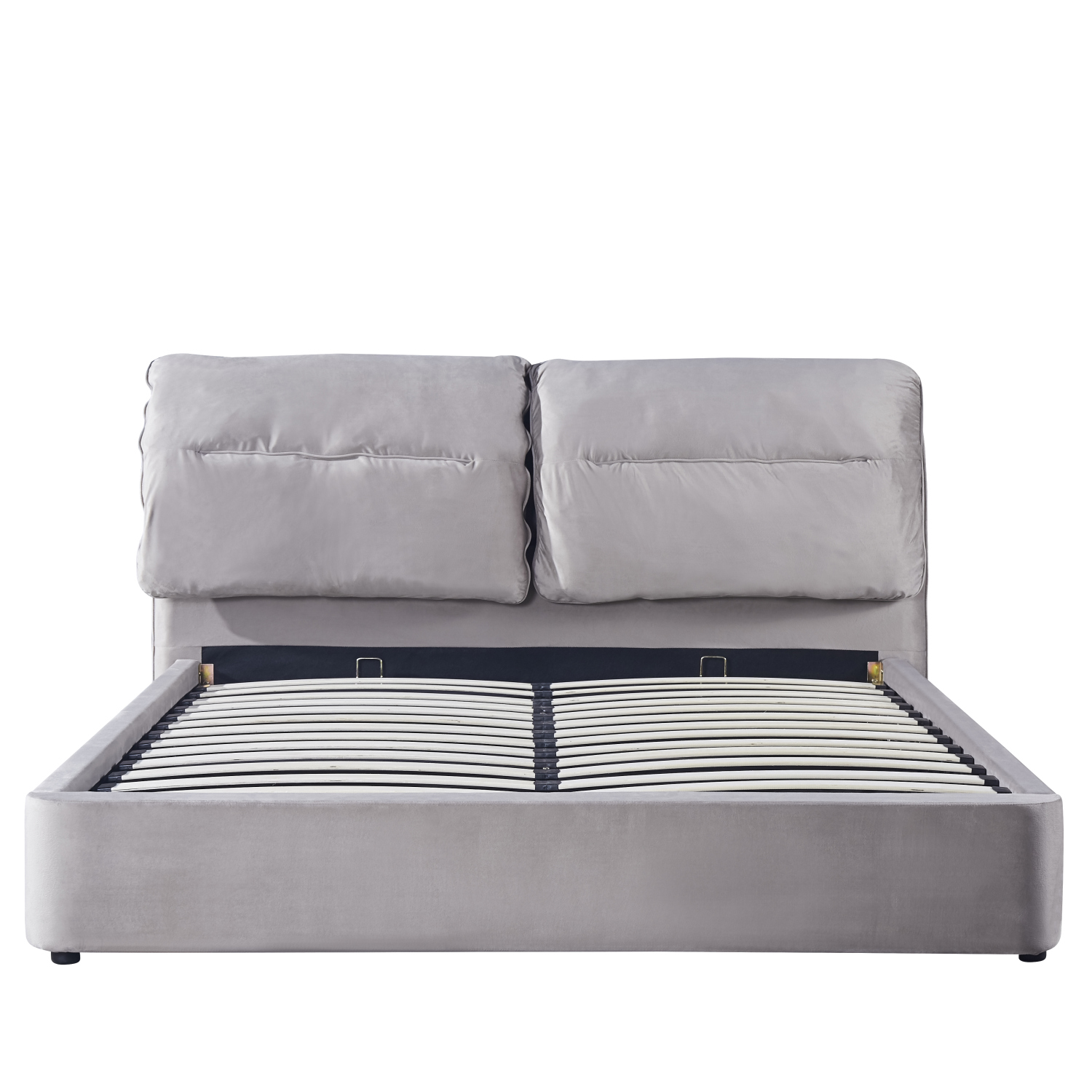 Κρεβάτι Διπλό ArteLibre ACAENA Γκρι Βελούδο (Στρώμα 160x200cm)