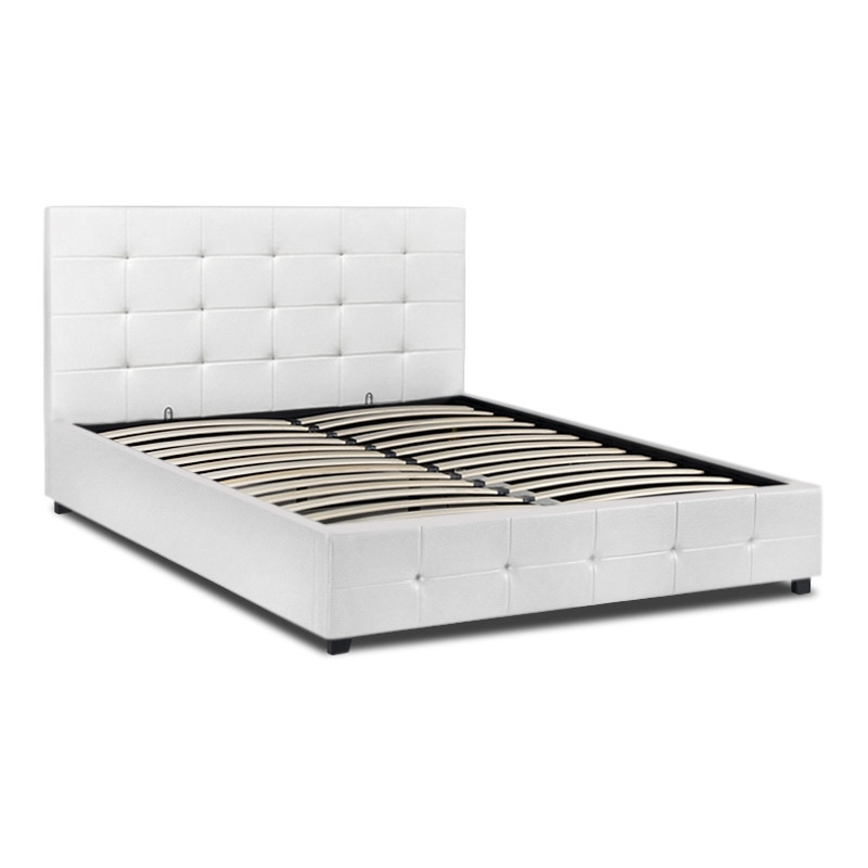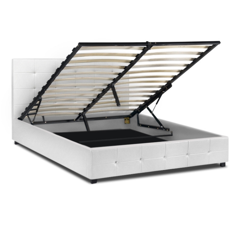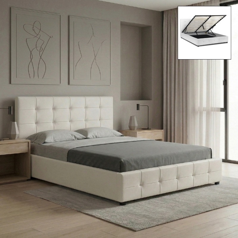 Κρεβάτι iro Megapap από Τεχνόδερμα με Αποθηκευτικό Χώρο Χρώμα Λευκό 150x200εκ.