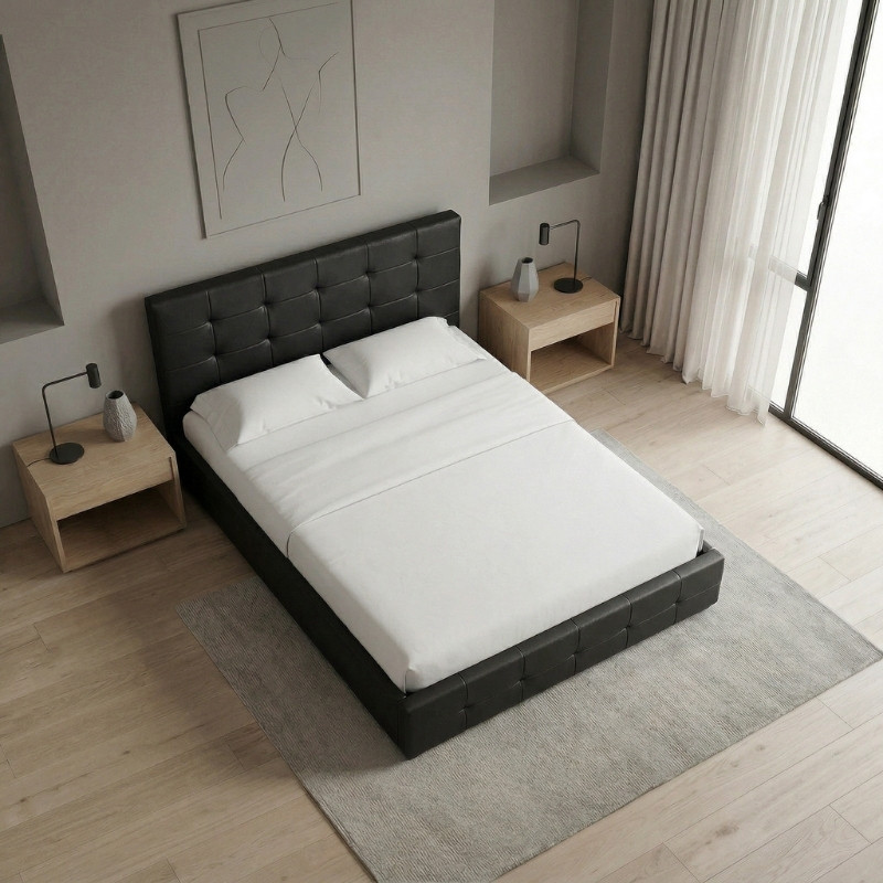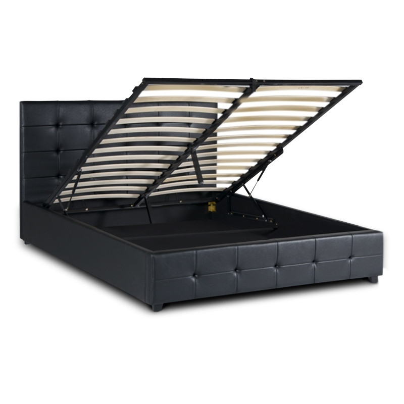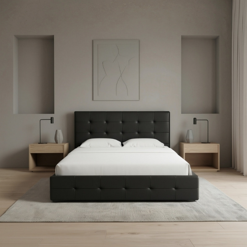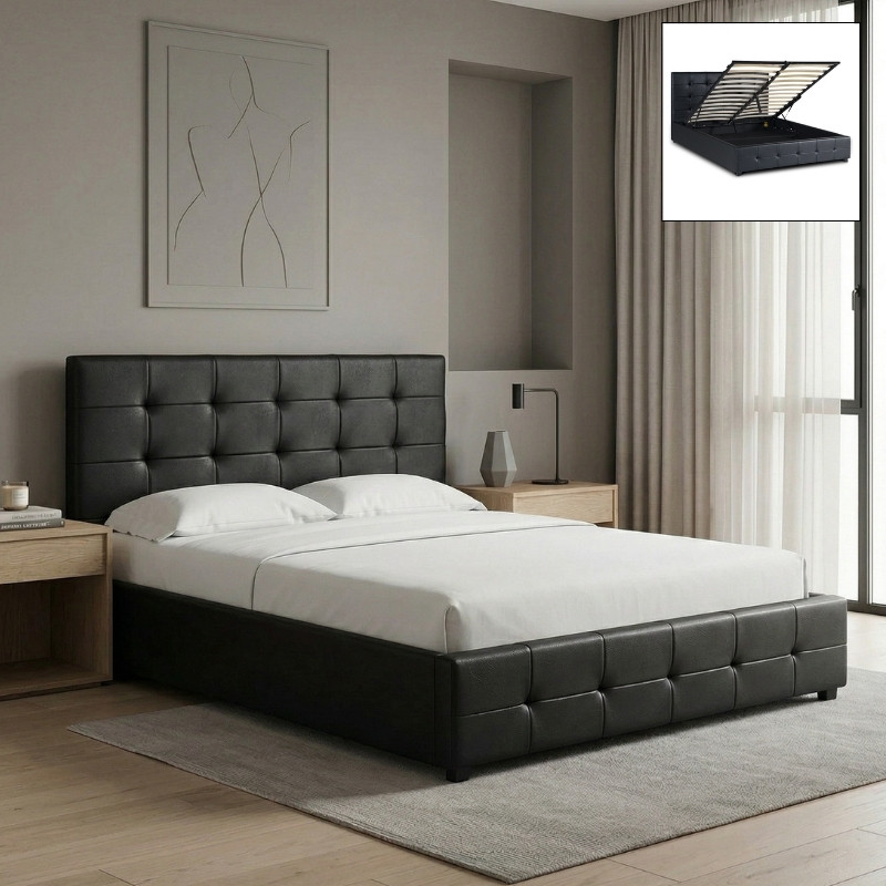 Κρεβάτι iro Megapap από Τεχνόδερμα με Αποθηκευτικό Χώρο Χρώμα Μαύρο 150x200εκ.