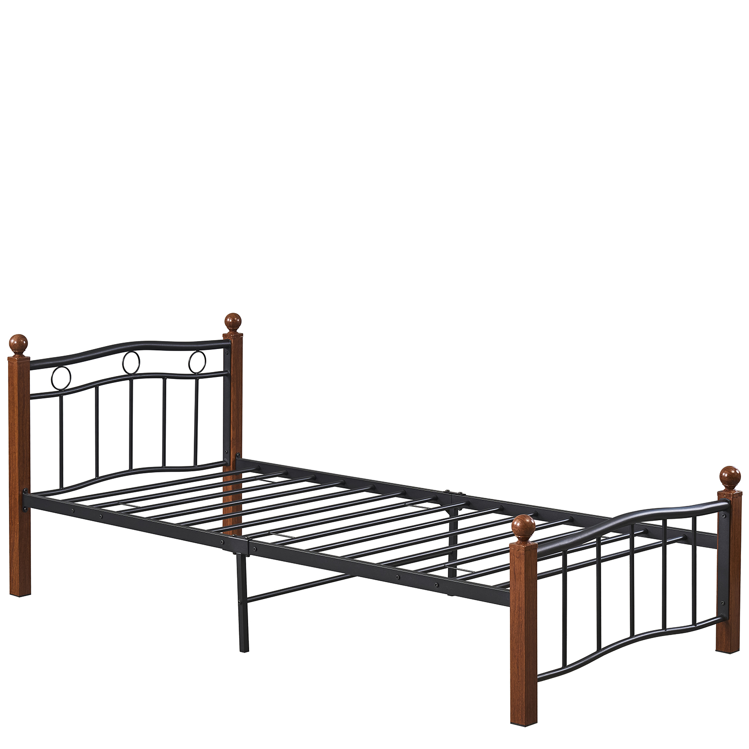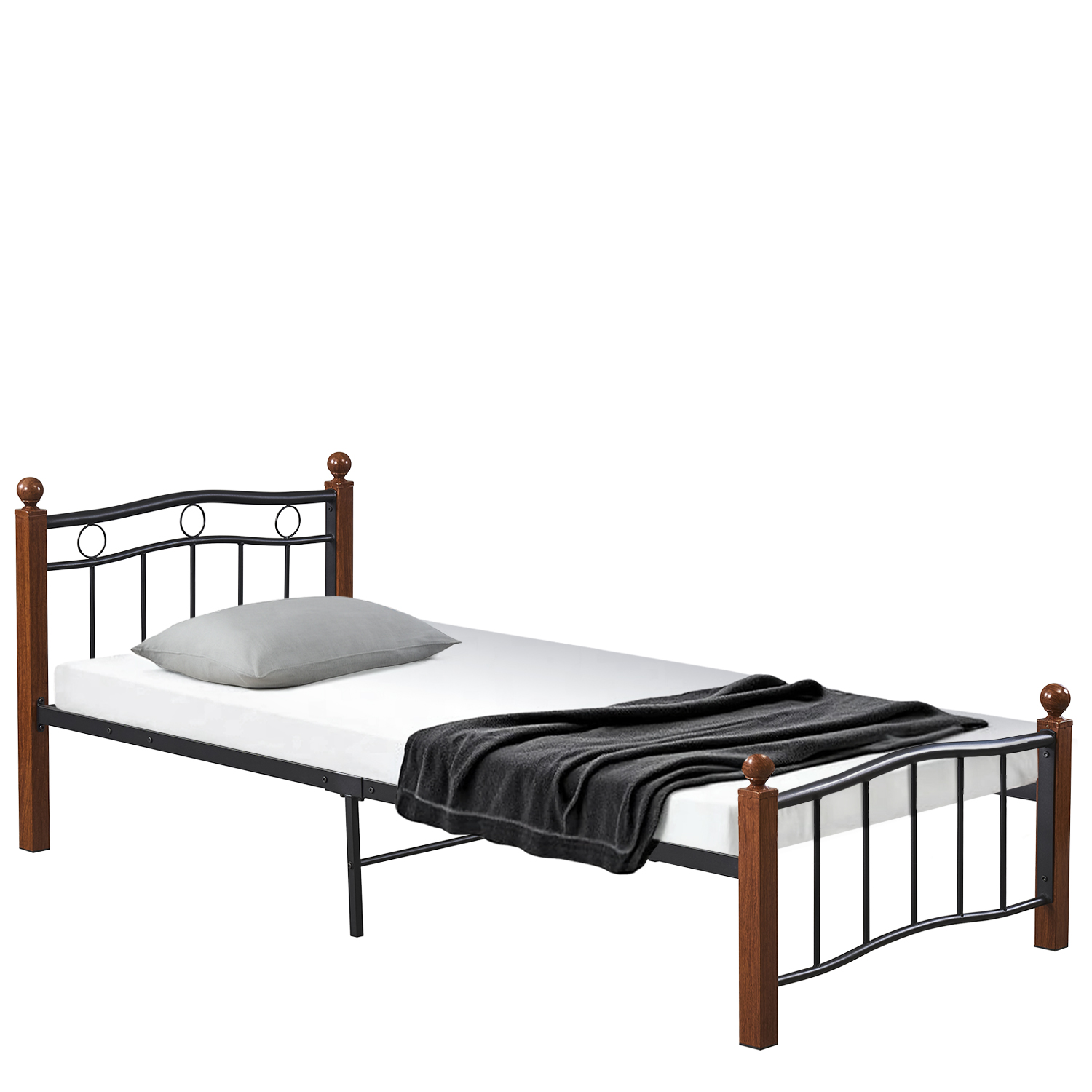 Κρεβάτι Μονό ArteLibre ARROWHEAD Μαύρο/Καρυδί Μέταλλο 210x98x85cm (Στρώμα 90x200cm)
