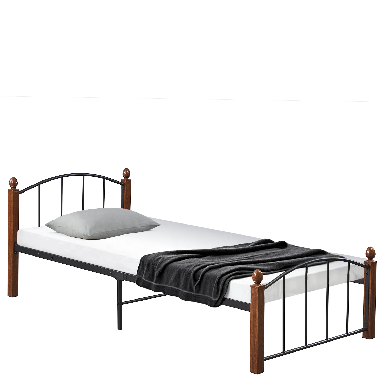 Κρεβάτι Μονό ArteLibre LARAMIE Μαύρο/Καρυδί Μέταλλο 210x98x76cm (Στρώμα 90x200cm)