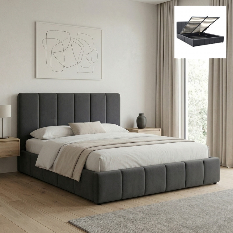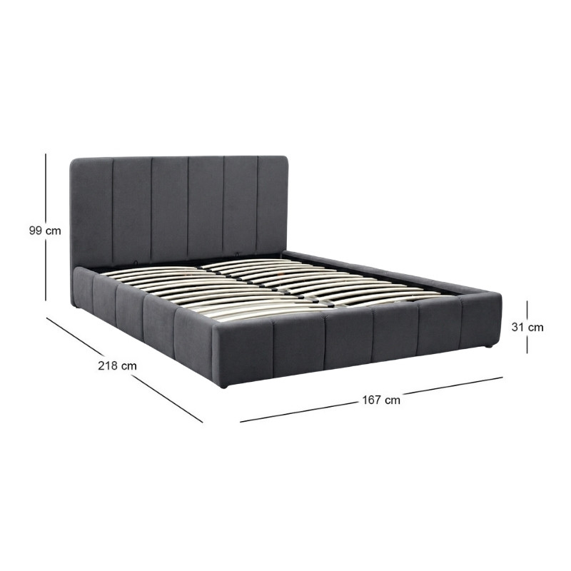 Κρεβάτι Nival Megapap Υφασμάτινο με Αποθηκευτικό Χώρο Χρώμα Ανθρακί 160x200εκ.