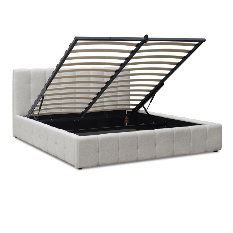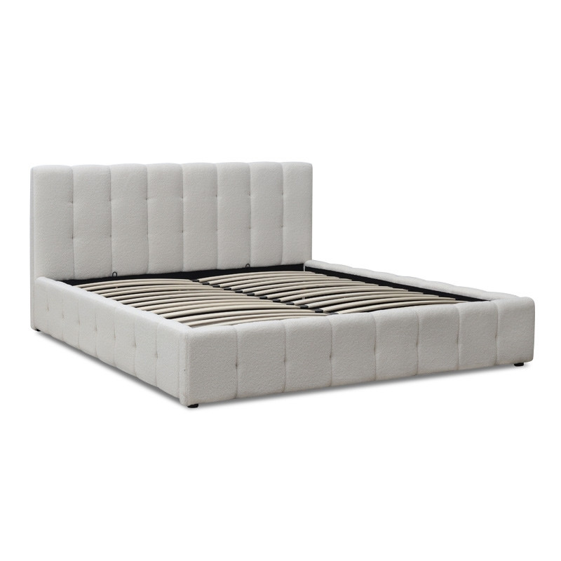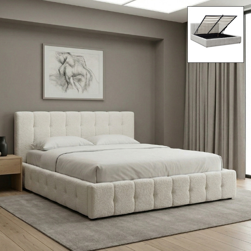 Κρεβάτι Norah Megapap Μπουκλέ Ύφασμα με Αποθηκευτικό Χώρο Χρώμα Ivory 160x200εκ.