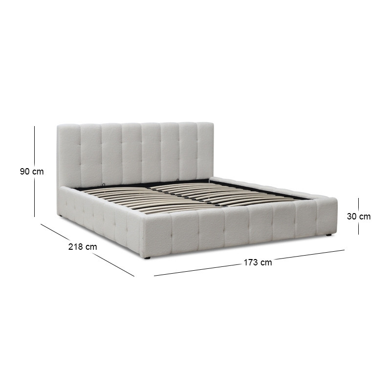 Η βάση με διπλή σειρά ανατομικών ταβλών εξασφαλίζει σωστή στήριξη του στρώματος και ποιοτικό ύπνο. Η επένδυση από μπουκλέ ύφασμα, με τη χαρακτηριστική ανάγλυφη υφή της, προσδίδει μια σύγχρονη και ιδιαίτερα κομψή αισθητική, δημιουργώντας ένα ζεστό και φιλόξενο περιβάλλον.