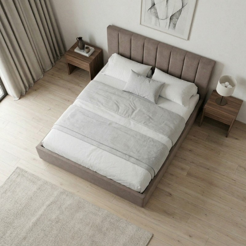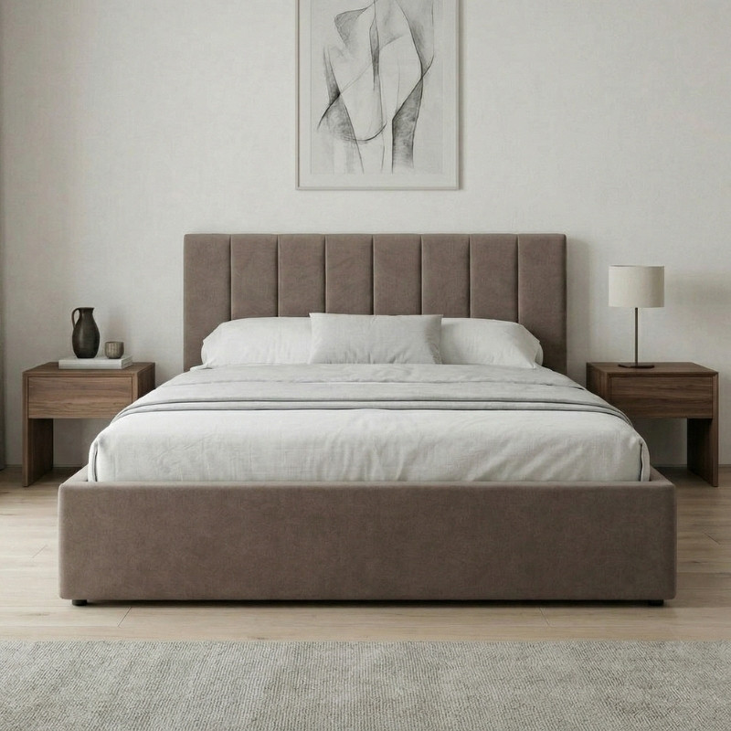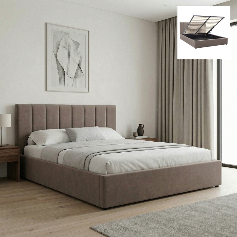Κρεβάτι Renata Megapap Υφασμάτινο με Αποθηκευτικό Χώρο Χρώμα Μπεζ 150x200εκ.