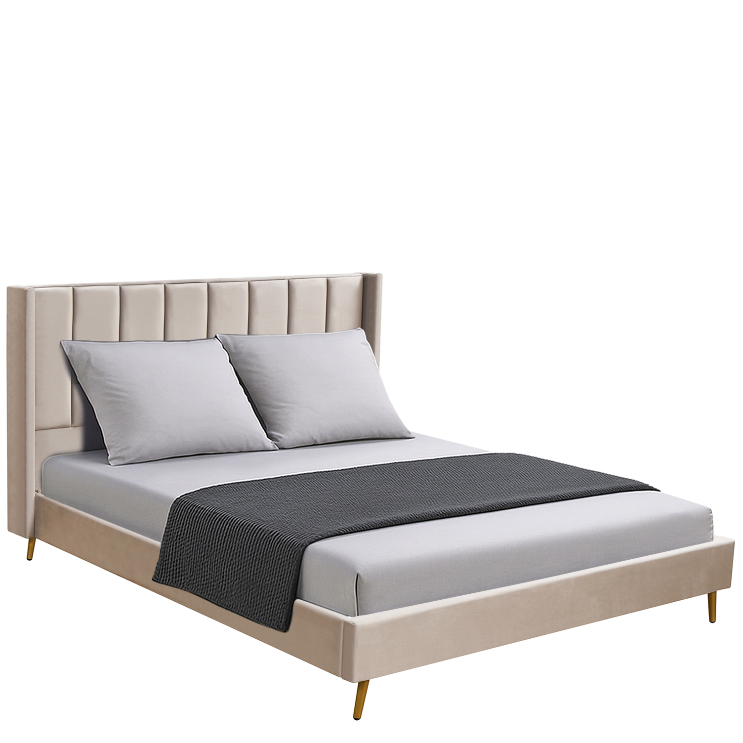 Κρεβάτι Υπέρδιπλο ArteLibre SEDONA Μπεζ Ύφασμα 216x176x110cm (Στρώμα 160x200cm)