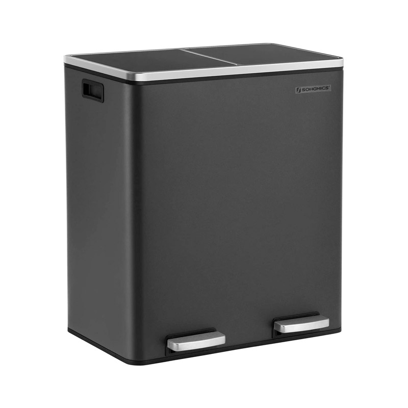 Μεταλλικός Διπλός Κάδος Απορριμμάτων από Ανοξείδωτο Ατσάλι με 2 Πεντάλ και Σύστημα Soft-Close 60 lt Χρώματος Μαύρο Songmics (Ltb60bk) (Sngltb60bk)