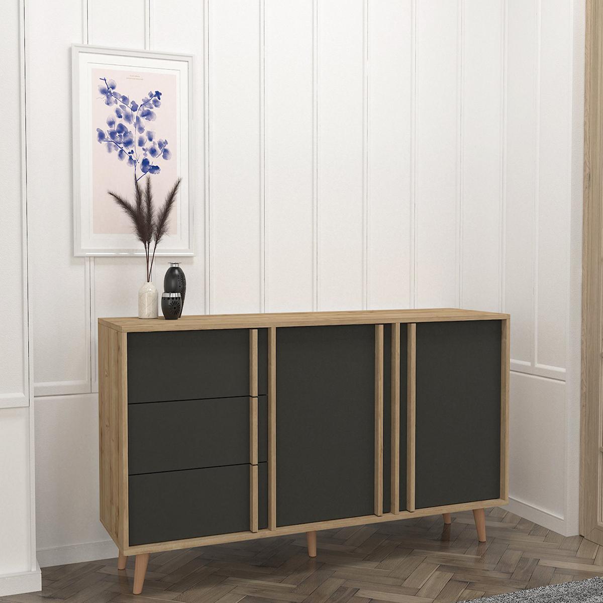 Μπουφές ArteLibre ANDROS Φυσικό/Ανθρακί Μοριοσανίδα/Μελαμίνη 160x45x85cm