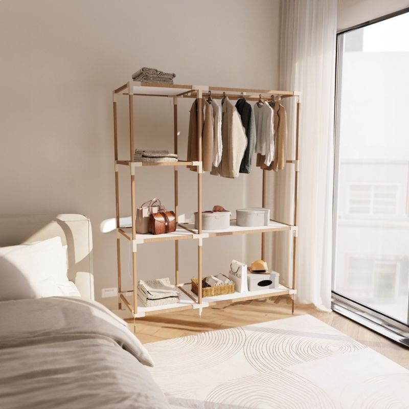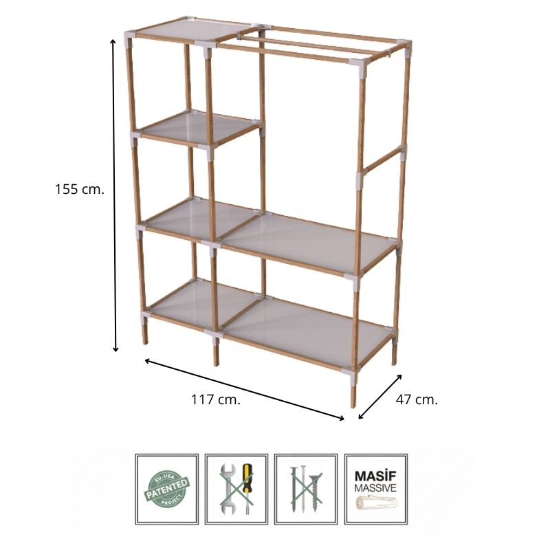 Ντουλάπα Ρούχων Ανοιχτή - Έπιπλο Εισόδου Ξύλινο - Πλαστικό Χρώμα Φυσικό - Μπεζ 117x47x155εκ.