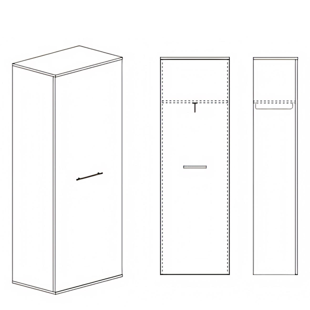 - Εσωτερικά διαθέτει ράφι και από κάτω χώρο με μεταλλική ράγα για το κρέμασμα ρούχων