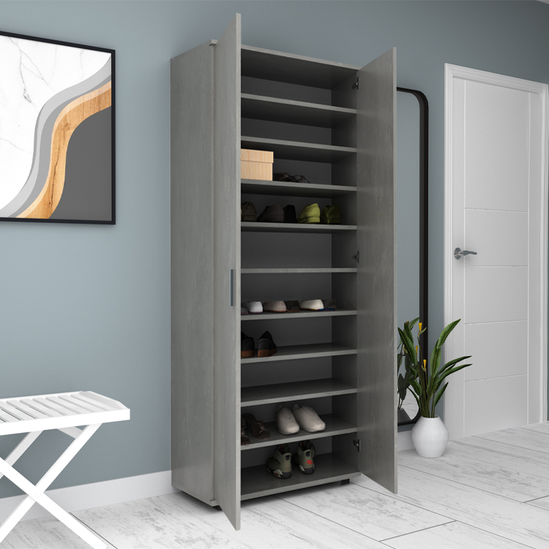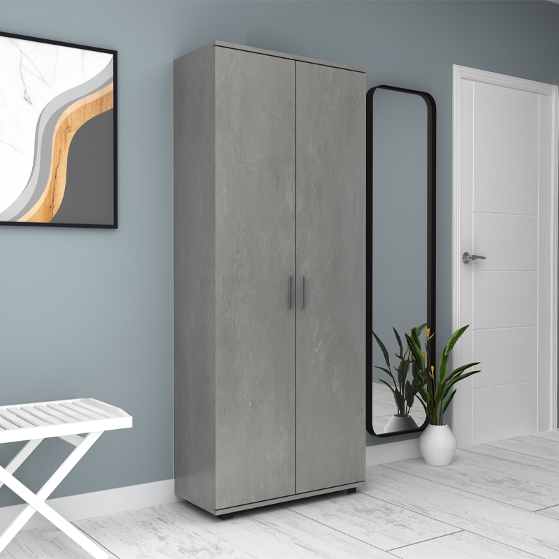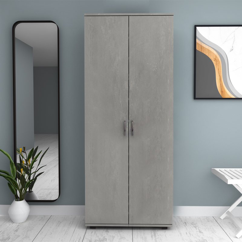 Ντουλάπα Ρούχων - Παπουτσοθήκη Eric Megapap Δίφυλλη Χρώμα Γκρι Σκυροδέματος 76x36x187εκ.