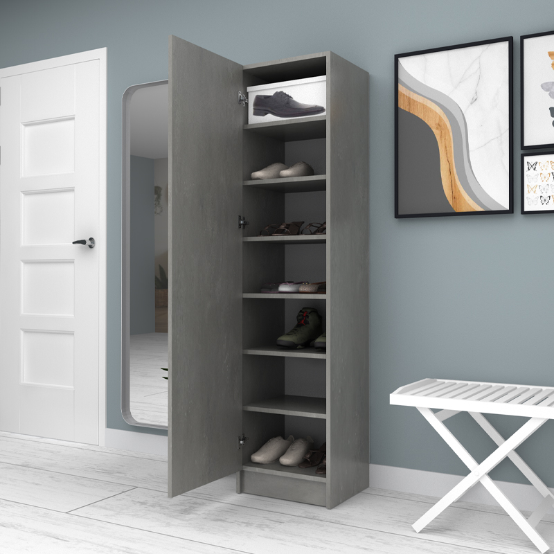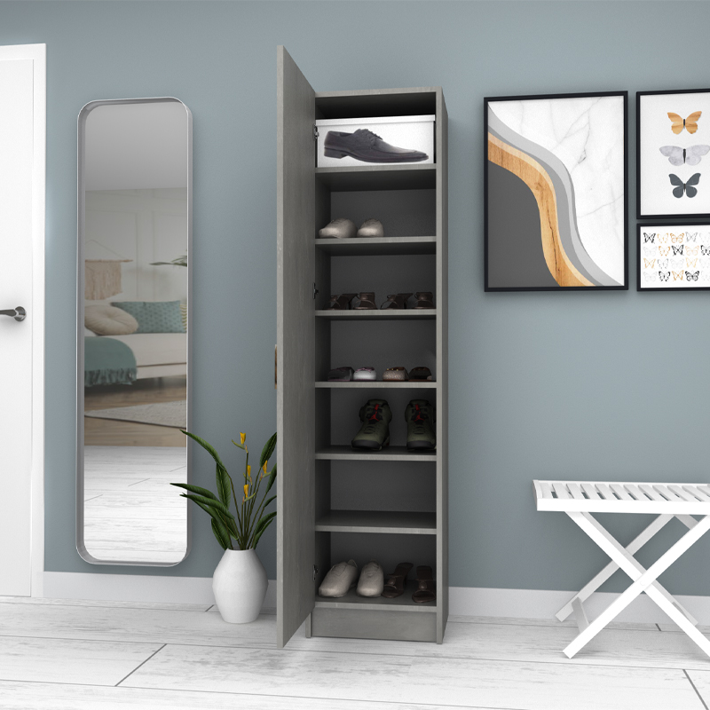Ντουλάπα Ρούχων - Παπουτσοθήκη Petro Megapap Μονόφυλλη Χρώμα Γκρι Σκυροδέματος 45x38x180εκ.