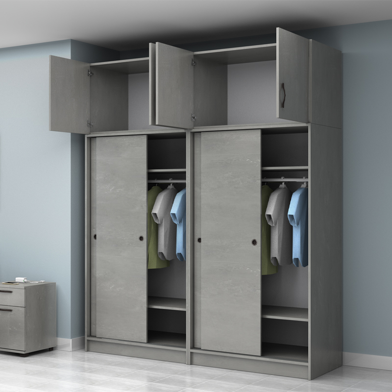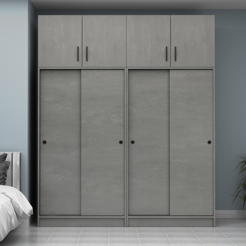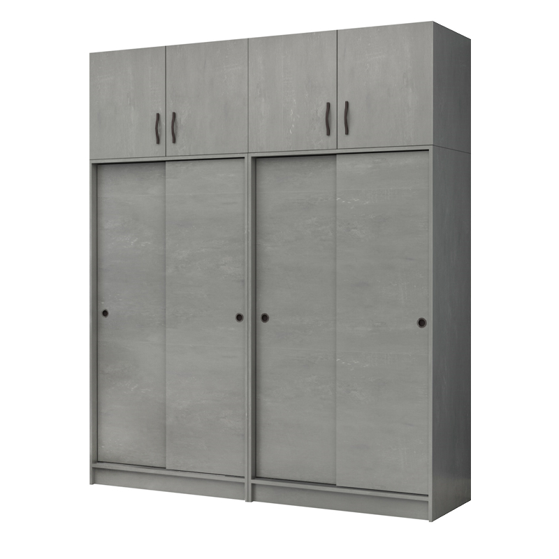 Ντουλάπα Ρούχων Regio Megapap Τετράφυλλη Συρόμενη με Πατάρι Χρώμα Γκρι Σκυροδέματος 200x60x240εκ.